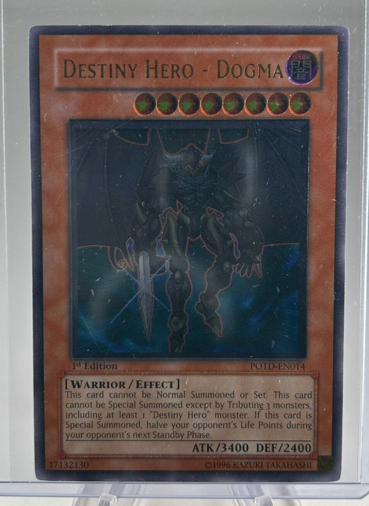This Ultimate Rare Destiny Hero Dogma card from the Power of the Duelist set is a must-have for any YuGiOh collector. Manufactured by Konami, this card is in lightly played condition and comes with a protective sleeve. With its striking design and powerful abilities, this card is a great addition to any deck. Don't miss out on the chance to add this rare and sought-after card to your collection.