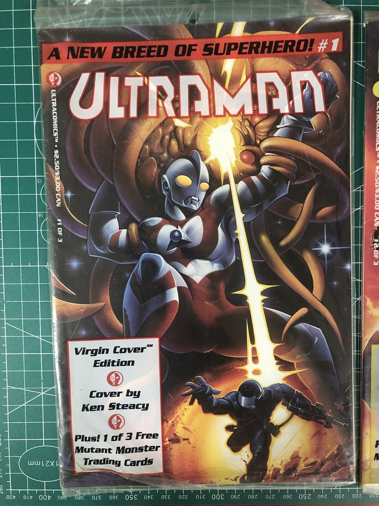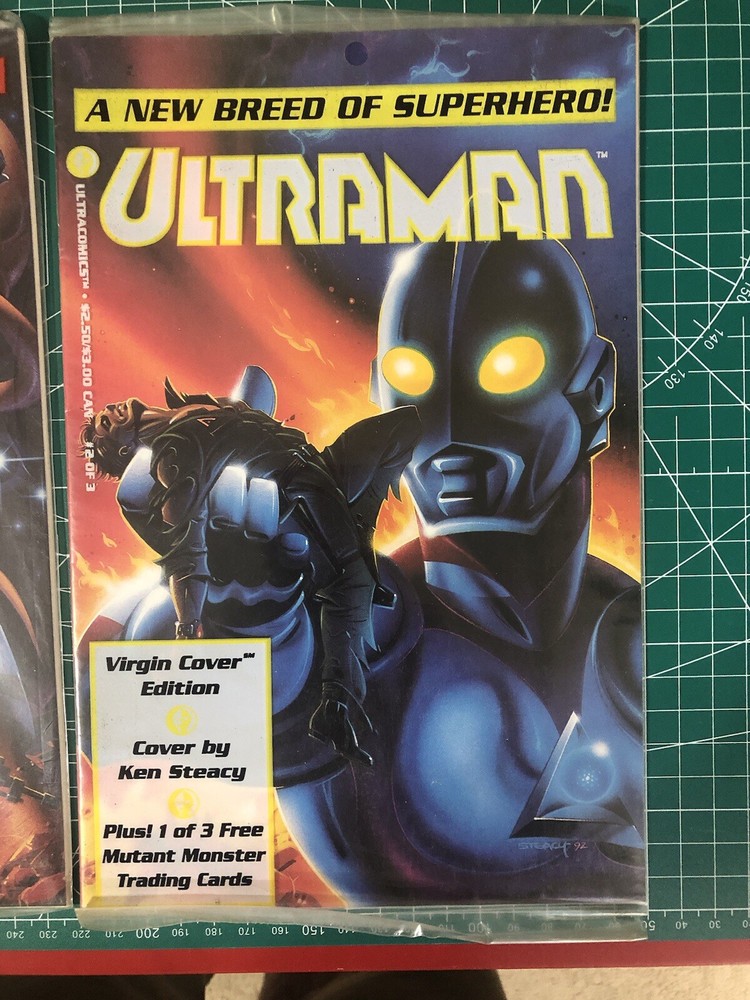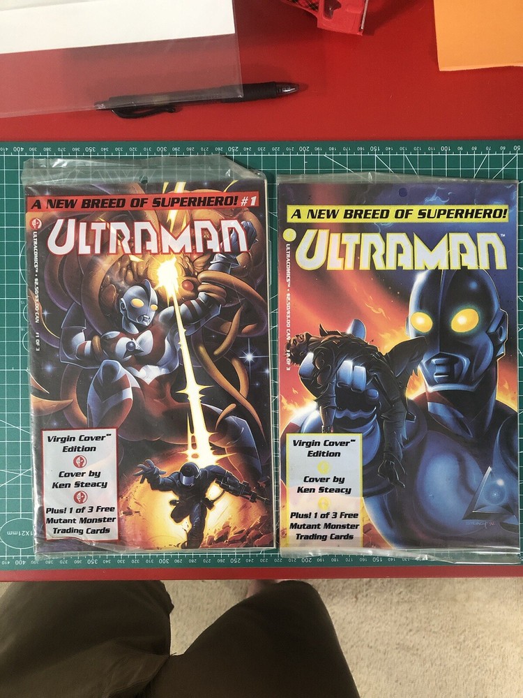 This Ultraman A New Breed Of Superhero! comic book lot features issues #1 and #2 of the mini-series. The comics are in sealed packaging and come with a polybag for protection. They are in English language and have a grade of 9.0 Very Fine/Near Mint. The comics feature Ultraman and Godzilla, along with other superheroes and monsters, in a thrilling adventure. The storyline is a mix of martial arts, action, superheroes, adventure, cyberpunk, cosmic, movie & TV, monster, fantasy, mecha, horror & sci-fi, and science fiction. The comics are from the United States and were published in 1993 by Harvey Comics. This lot is perfect for collectors and fans of Ultraman and Godzilla.