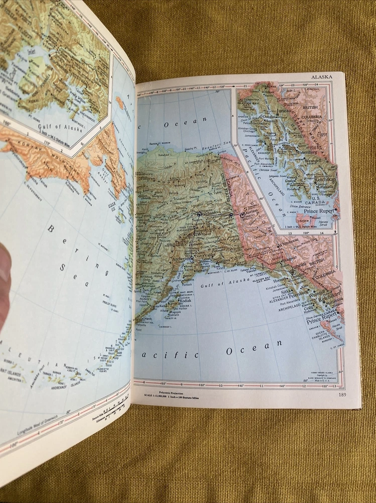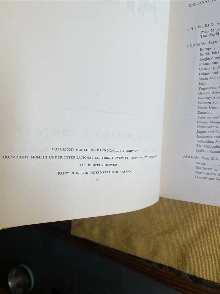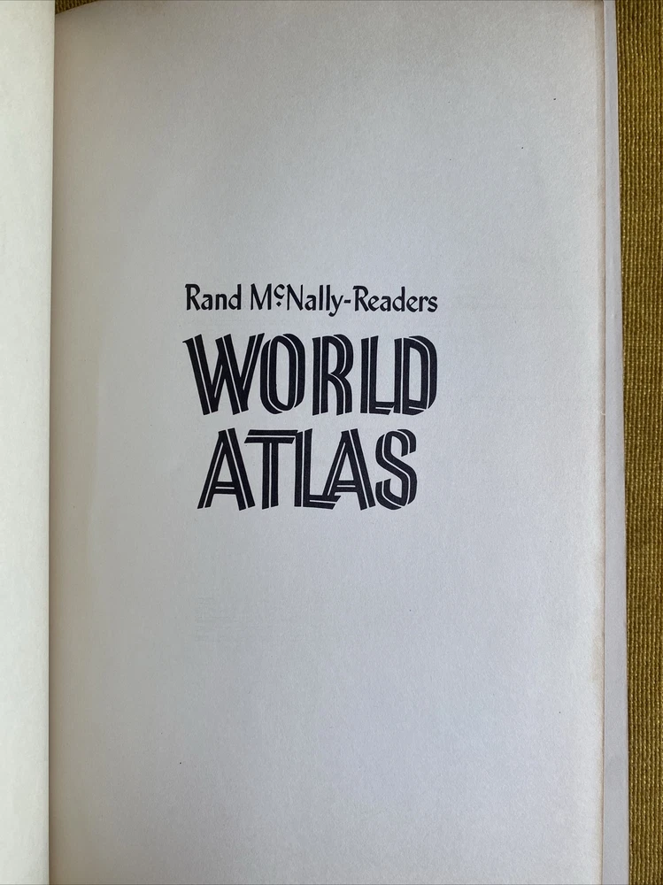 VINTAGE - Rand McNally's-Readers World Atlas - Leather bound - 1953. GOOD - wear covers - binding strong - showing age but solid vintage item - please see pics...