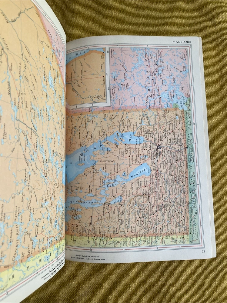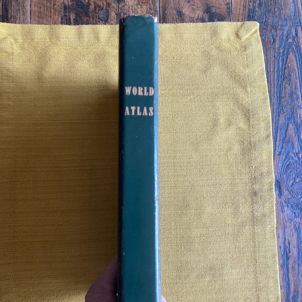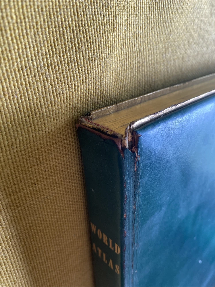 VINTAGE - Rand McNally's-Readers World Atlas - Leather bound - 1953. GOOD - wear covers - binding strong - showing age but solid vintage item - please see pics