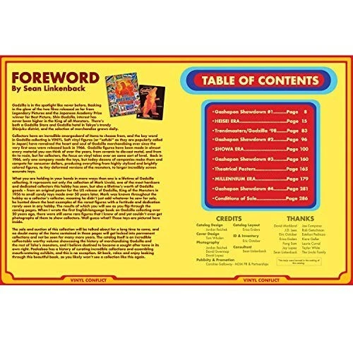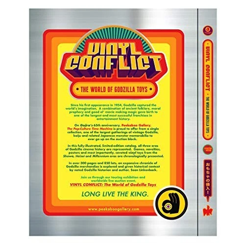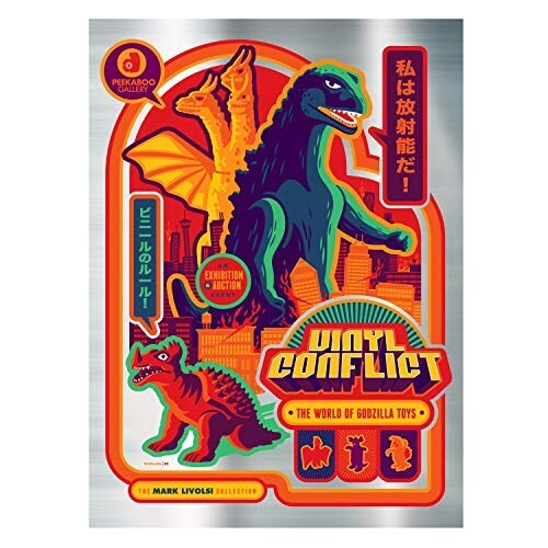 On the occasion of Godzilla's 65th anniversary and in celebration of the newest feature length, Summer blockbuster movie, Godzilla: King of the Monsters by Legendary Pictures, Peekaboo Gallery is proud to offer the exclusive, limited edition show catalog for our exhibition and auction event, VINYL CONFLICT: The World of Godzilla Toys . The genre of Godzilla and kaiju toy collecting is as imaginative as it is diverse. Over the past fifty years, the toys to come out of Japan on the subject are so numerous, very few definitive visual accounts have been attempted. Certain narrow subjects have been expertly tackled in magazines and price guides, but never has a vast cross section of what collecting this field of collectables been wrapped up in one book on the subject. With this unrivaled exhibition of a singular, curated collection, we have gathered the finest of the Godzilla collectables world in one place. VINYL CONFLICT: The World of Godzilla Toys will perhaps be one of the definitive art books on the subject of Godzilla collectables. Almost 300 full-color pages, expert photography, over 1200 items gathered into 850 lots, historical introductions and a themed progression of Godzilla toy history, this book is what Godzilla fans have been waiting for. The cover and main show illustration by rock-star illustrator and graphic artist, Tom Whalen! Historical intros by Godzilla collectable author, Sean Linkenback.