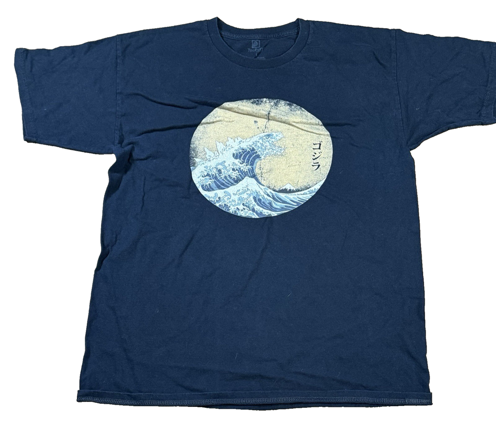 Godzilla Great Wave Kanagawa T-Shirt TeeFury Japan Art Kaiju Men's Large This Godzilla x Great Wave of Kanagawa mashup tee combines classic Japanese art with pop culture in epic kaiju fashion. From TeeFury, this Men's size Large t-shirt features Godzilla towering over the famous wave, paying homage to Hokusai's iconic woodblock print. A must-have for fans of Godzilla, Japanese aesthetics, and unique graphic tees. * Brand: TeeFury * Size: Men's Large * Color: black * Graphic: Godzilla & Great Wave of Kanagawa mashup * Fit: Standard unisex * Material: 100% Cotton * Style: Crew neck, short sleeve * Theme: Japanese art, Kaiju, Pop Culture * Ideal for: Godzilla fans, streetwear, anime/manga lovers, collectors of unique graphic tees Condition: Pre-owned – Excellent: No stains, holes, or major wear. Graphic is bold and clean. Please review all photos before purchasing. We strive to describe items accurately—if we miss anything, we'll make it right. godzilla t-shirt, great wave mashup shirt, teefury godzilla, kaiju shirt, hokusai wave shirt, japanese art tee, godzilla vs wave shirt, monster movie tee, graphic pop culture shirt, japan streetwear, men's large godzilla shirt
