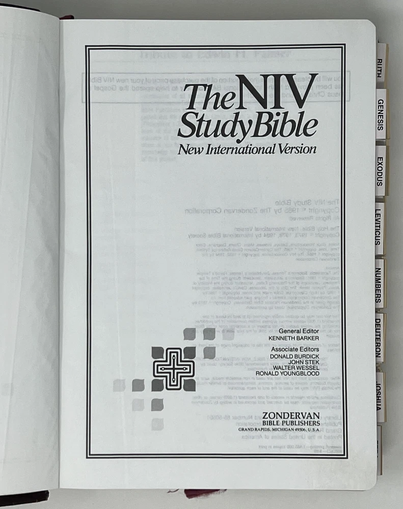 VINTAGE RELIGION: The NIV Study Bible: Red Letter Edition Edited by Kenneth Barker - 1985 Bonded Leather Softcover Published by Zondervan Bible Publishers Please see pictures to determine the exact condition of this book. Please send a message if you have any questions. We ship promptly.