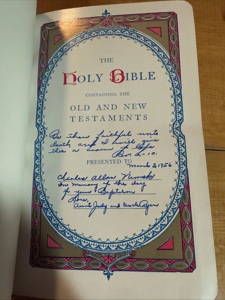 Vintage 1955-? KJV BIBLE Holman Self-Pronouncing Leather Maps Helps Photos RARE Given as baptism gift-in 1956 Has writing on first presentation page. One red ribbon Very lightly used if at all.
