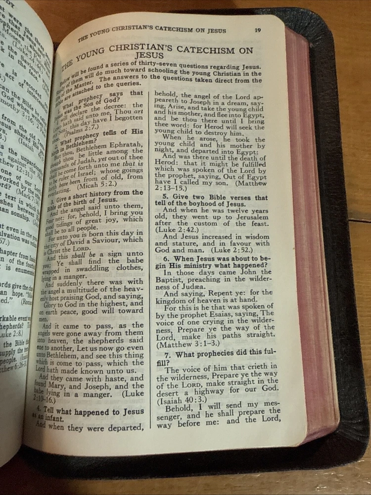 Vintage 1955-? KJV BIBLE Holman Self-Pronouncing Leather Maps Helps Photos RARE Given as baptism gift-in 1956 Has writing on first presentation page. One red ribbon Very lightly used if at all....