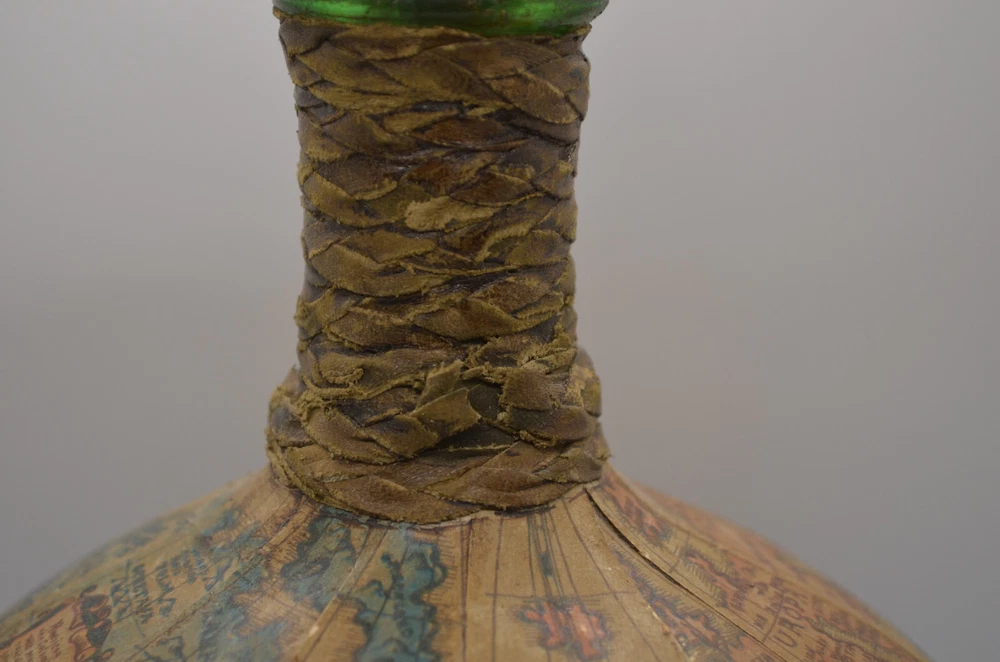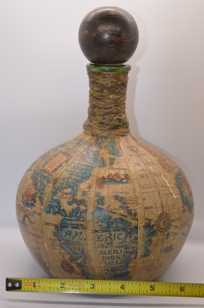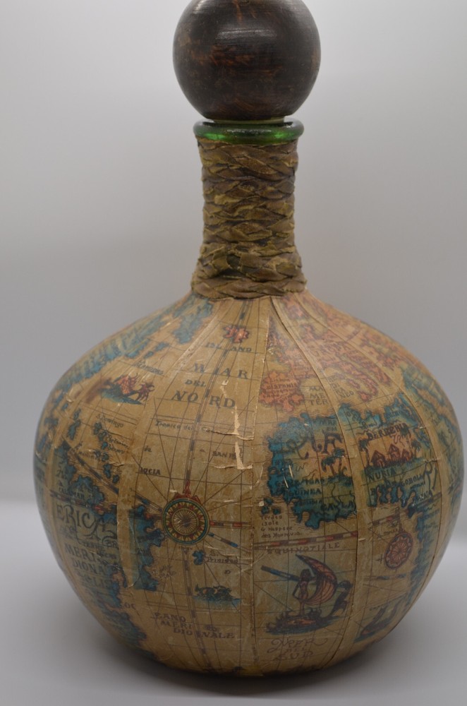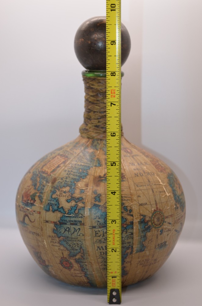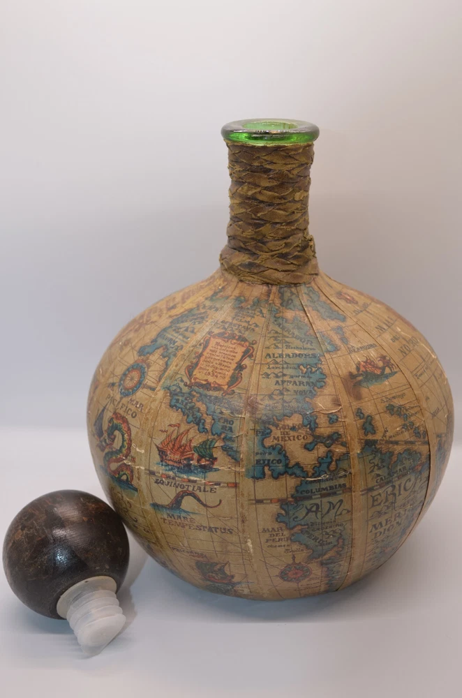 Vintage 1960s Italian World Map Leather bound, Glass Decanter.