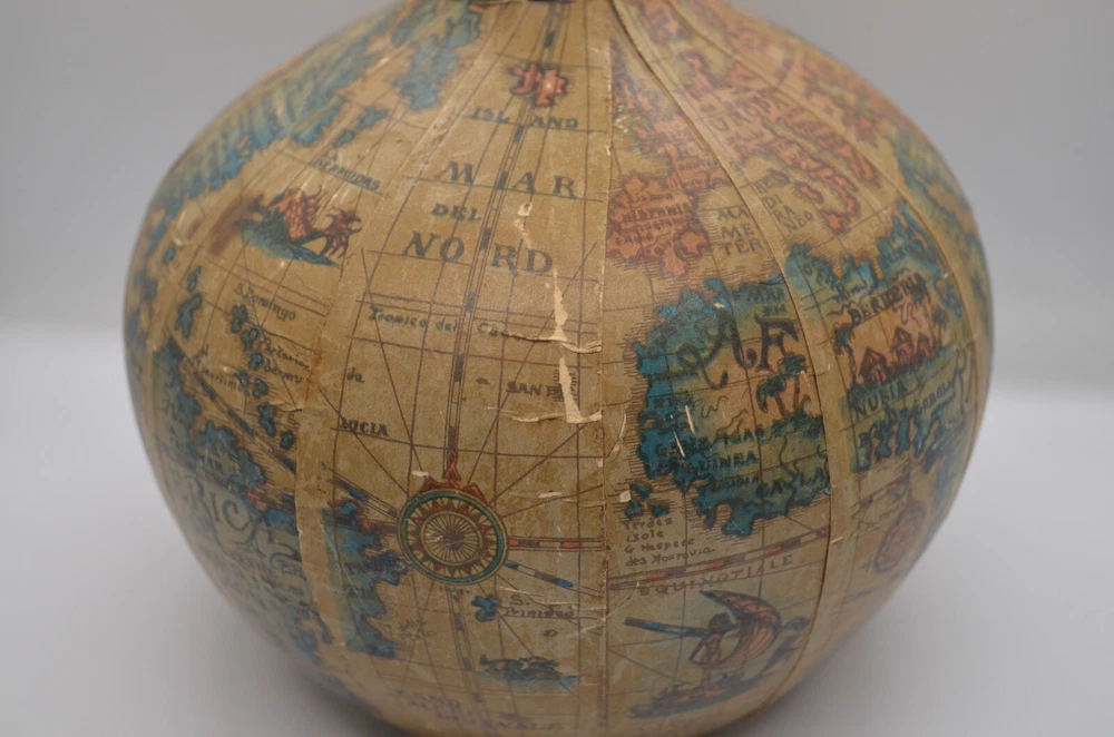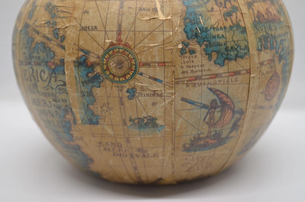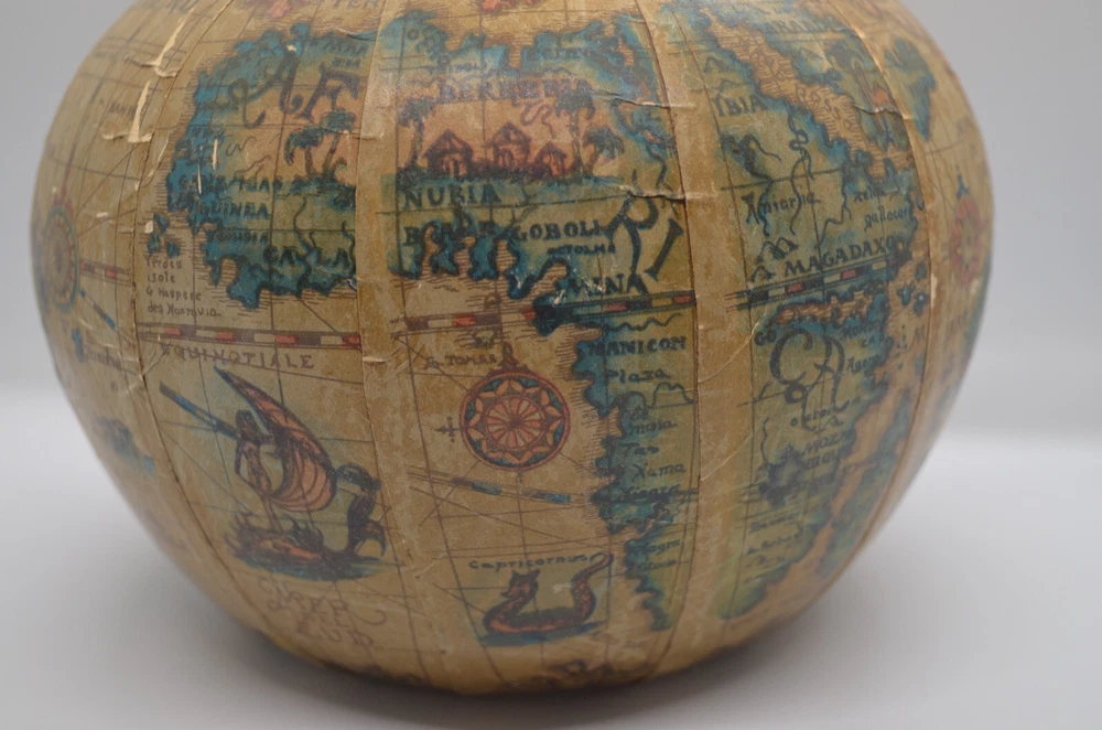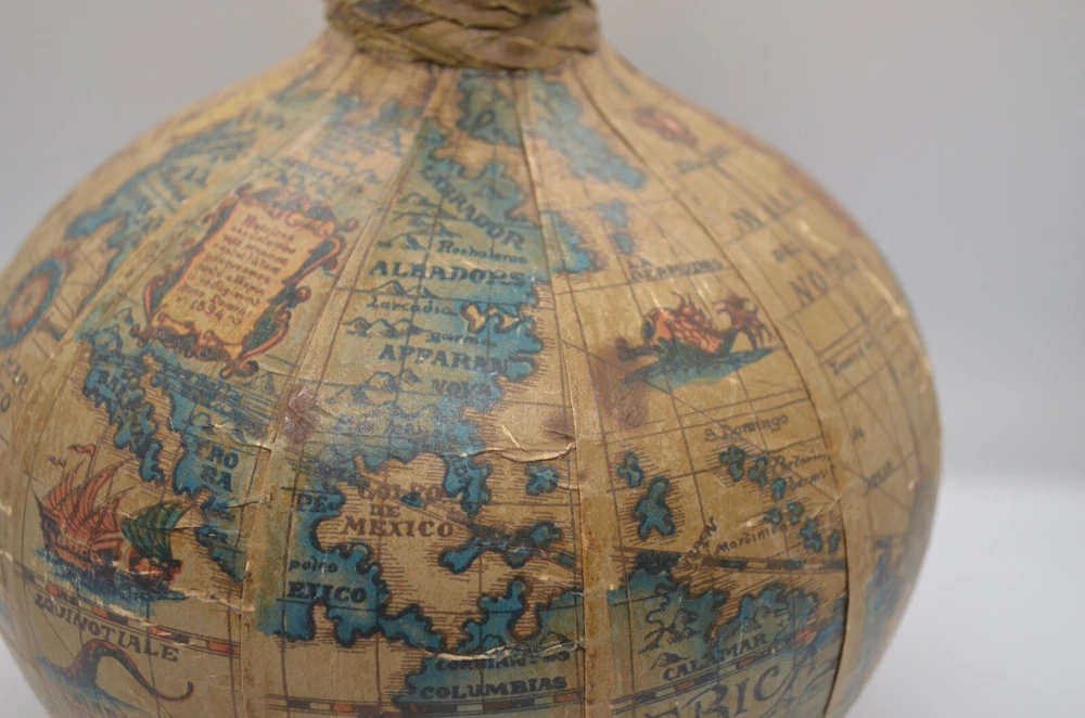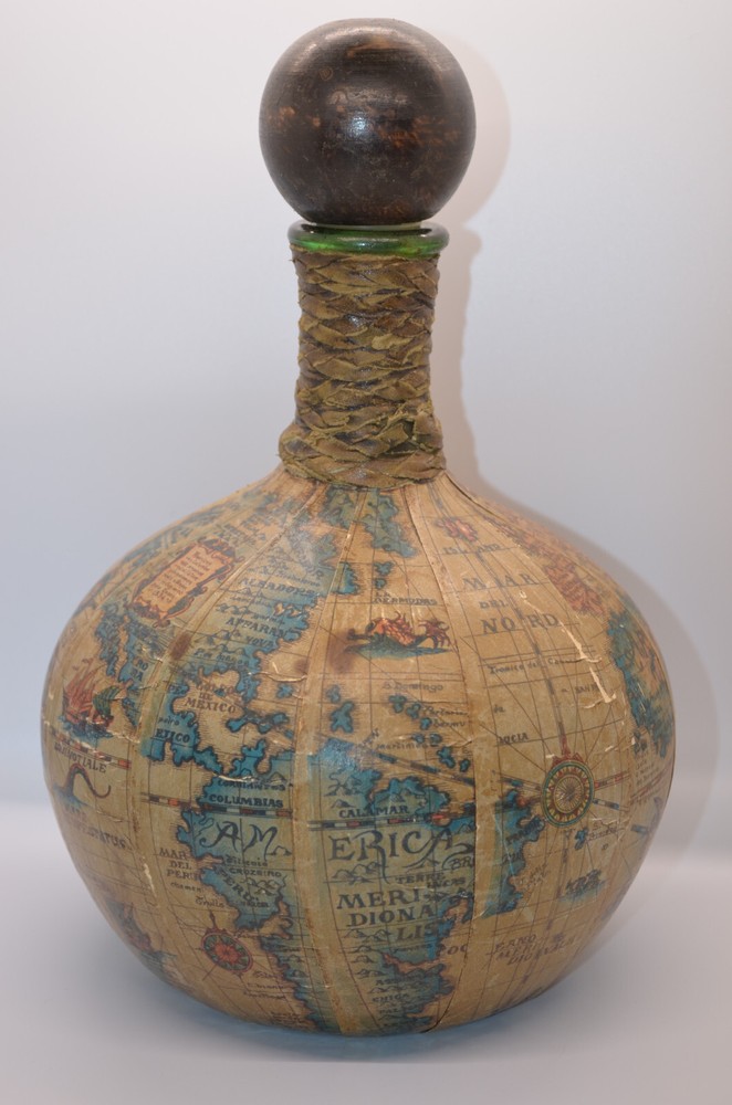 Vintage 1960s Italian World Map Leather bound, Glass Decanter.