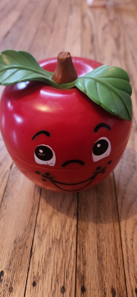 Take a trip down memory lane with this vintage 1972 Fisher Price Happy Apple Rolly Poly. This classic toy features a chime sound and stem for little ones to push and roll around. The bright red color and friendly face of the Happy Apple character family make it a perfect addition to any child's toy collection. Recommended for ages 1-4, this timeless toy is sure to provide hours of entertainment for any child.