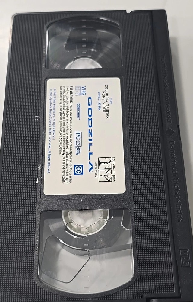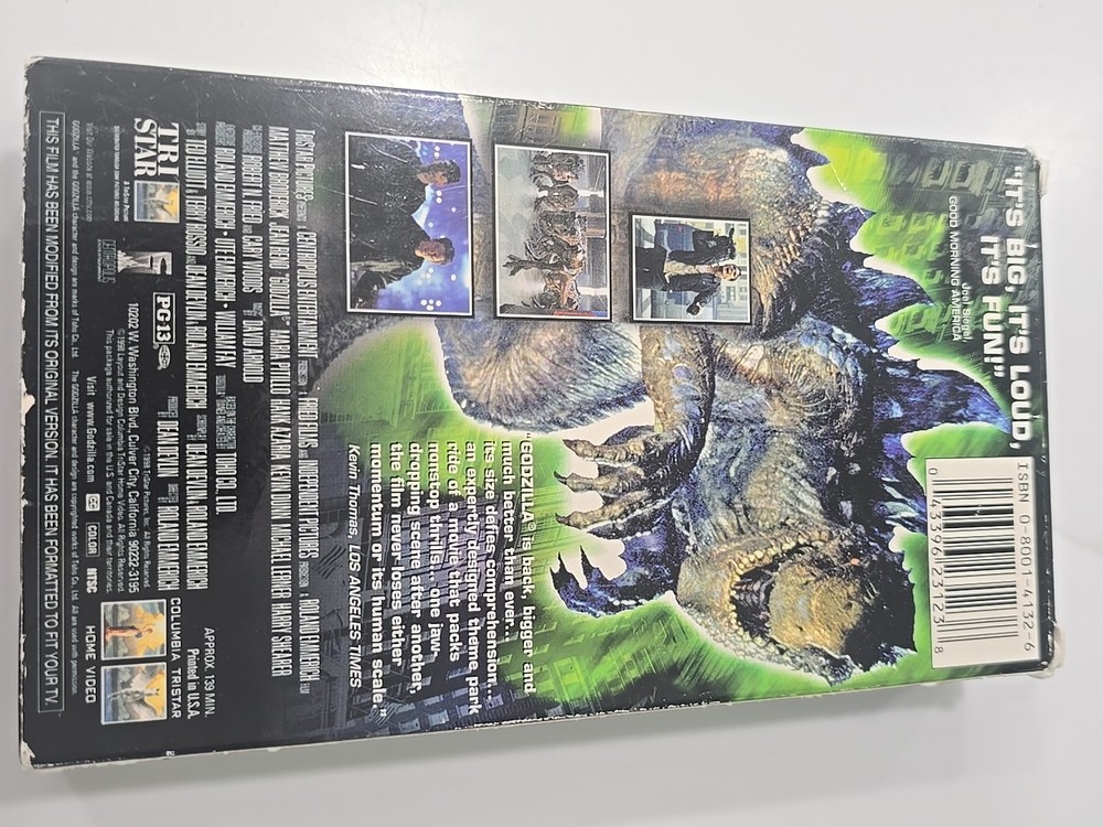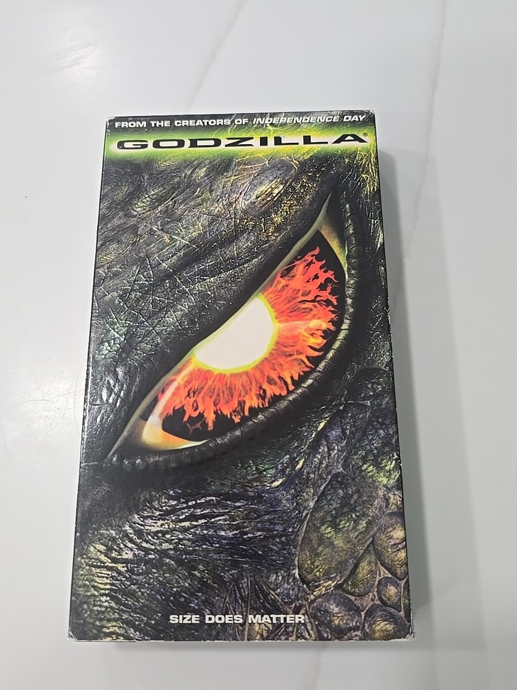 This is a vintage 1998 VHS tape of the classic movie "Godzilla" directed by Roland Emmerich. The tape features an embossed 3D cover art design that makes it a great collectible item for fans of the 90's. The movie is in NTSC format and has a rating of PG-13. It belongs to the Sci-Fi & Fantasy genre and has a sub-genre of Art. The leading roles are played by Jean Reno, Matthew Broderick, and Maria Pitillo. This item is perfect for movie collectors and enthusiasts alike.