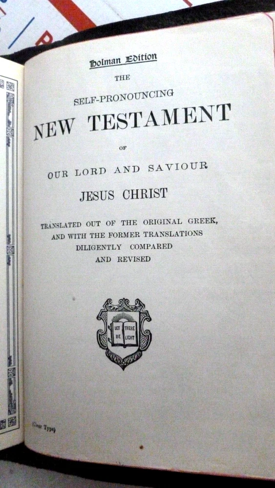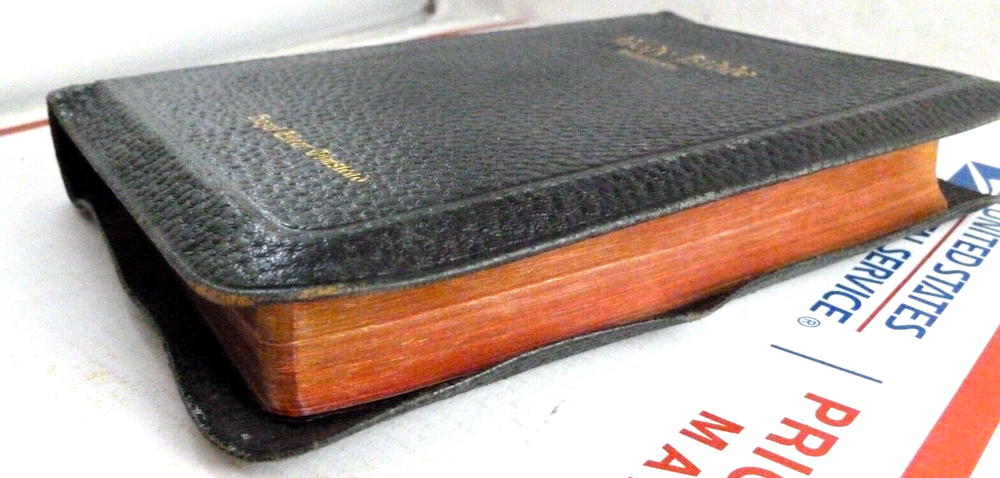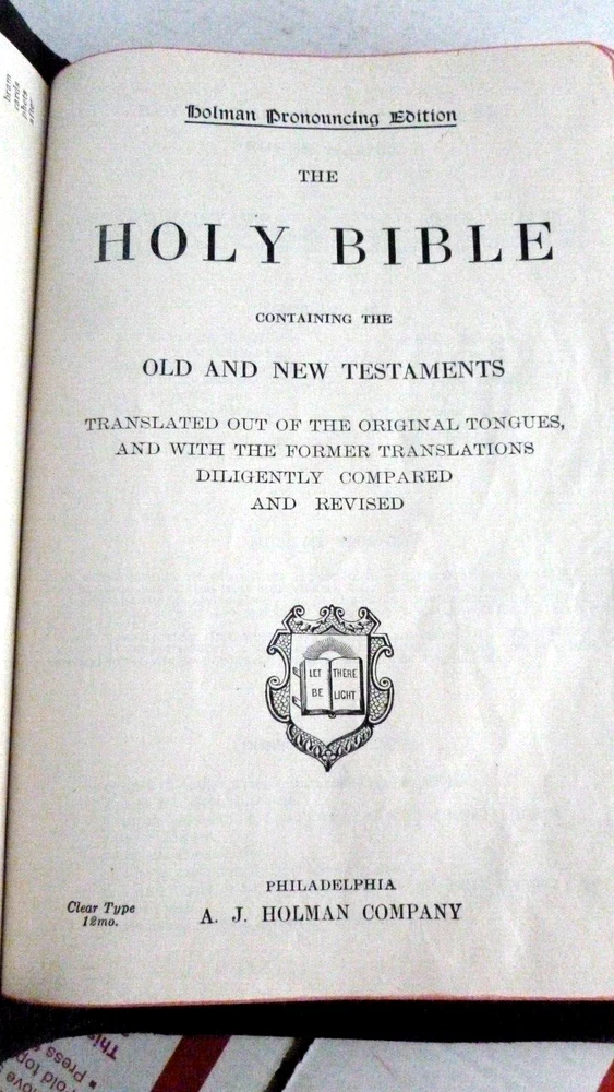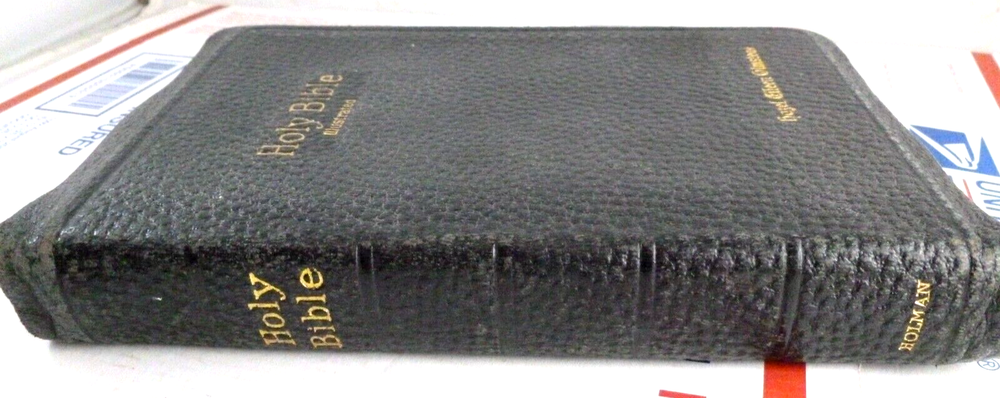 Up for your consideration is a vintage antique 1924 Holman Pronouncing Edition Holy Bible. Published by A.J. Holman Company in Philadelphia, USA. Genuine black in color leather cover with gold gild lettering and red/gold page edges. Illustrated with black and white pictures and colored maps in the back. Contains the Old and New Testaments. Translated out of the original tongues, and with the former translations diligently compared and revised. Measures about 5.625" x 8" x 1.125". Maps in the back are dates years 1903 and 1904. Item is in pre-owned, used condition. Shows some signs of use, age, and wear. There are a few small tears in some pages. Some bent pages and page corners. Wear to extremities. In overall great condition. Please see pictures provided. If you have any problems or questions, feel free to send a message and I will get back to you as soon as possible. Fast & Free Shipping! American seller, buy with confidence! If you experience any problems or concerns please send me a message BEFORE leaving feedback.