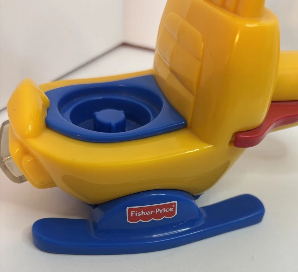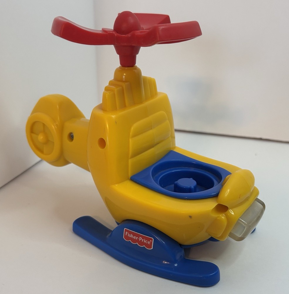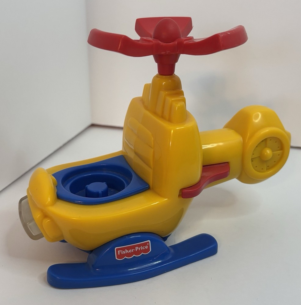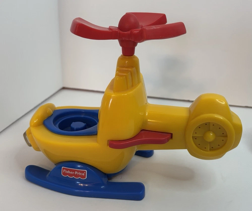 THIS IS A FISHER PRICE LITTLE PEOPLE HELICOPTER DATED 2000. IT DOES NOT COME WITH THE FIGURE. IT RUNS ON TWO AA BATTERIES, NOT INCLUDED. IT DOES WORK (SEE VIDEO). MEASURES 7" LONG X 5" TALL X 3.5" WIDE. IT SHOWS SOME WEAR WITH AGE AND PLAY. A FEW SMUDGE MARKS. PLEASE SEE PHOTOS FOR DETAILS. THANK YOU FOR TAKING THE TIME TO LOOK AT OUR ITEM. PLEASE MAKE SURE THAT THE CONFIRMED ADDRESS ON YOUR E-BAY ACCOUNT IS CORRECT. IF YOU HAVE MOVED PLEASE TAKE THE TIME TO CHANGE YOUR ADDRESS ON YOUR E-BAY ACCOUNT ! FEEL FREE TO E-MAIL US WITH ANY QUESTIONS YOU MAY HAVE. PLEASE ASK ALL QUESTIONS BEFORE BIDDING OR USING BUY IT NOW! PLEASE DO NOT ASK FOR CHANGES AFTER YOU HAVE BID OR USED BUY IT NOW! OUR INTENT IS NOT TO MAKE MONEY ON SHIPPING COSTS, WE CAN NOT CONTROL THE COST HOWEVER. LARGE ITEMS COST MORE TO SHIP AND TO PACK. SHIPPING MATERIALS ARE VERY EXPENSIVE. SOMETIMES WE HAVE TO BUY SPECIAL BOXES AND SHIPPING SUPPLIES FOR A CERTAIN ITEMS. PLEASE DO NOT E-MAIL ME AND ASK ME TO LOWER THE SHIPPING COSTS. I LIVE IN OHIO, SO THE FURTHER YOU LIVE FROM ME, THE HIGHER THE SHIPPING COSTS. IF YOU HAVE A PROBLEM WITH YOUR ITEM PLEASE CONTACT ME BEFORE LEAVING NEGATIVE FEEDBACK. I WILL DO WHAT I CAN TO MAKE THE SITUATION RIGHT. I WANT YOU TO BE HAPPY. IF YOU ARE HAPPY, PLEASE LEAVE FIVE STAR RATINGS, THIS IS HOW E-BAY RATES US.