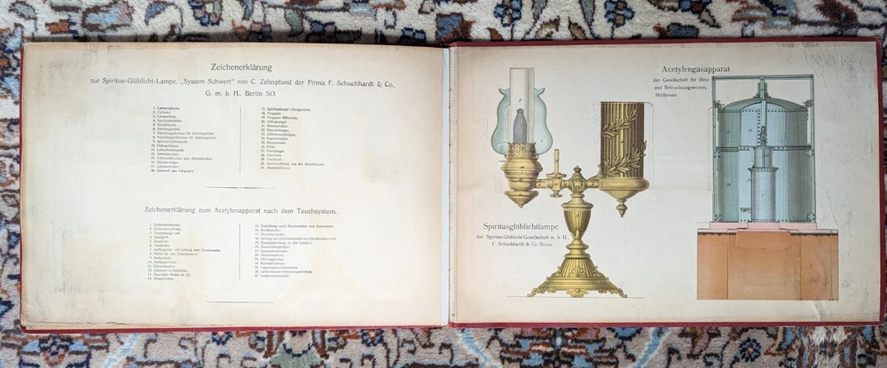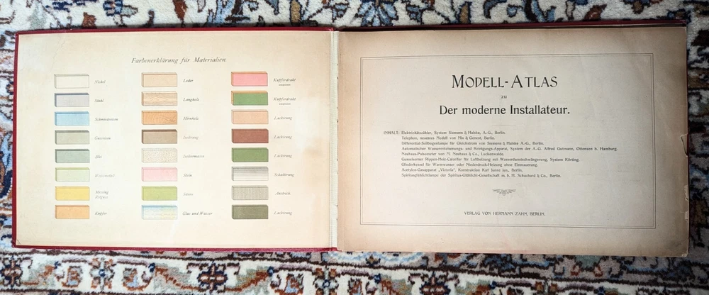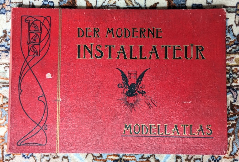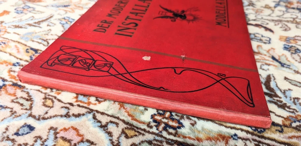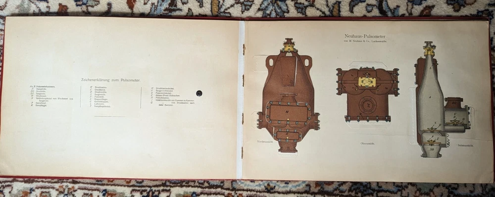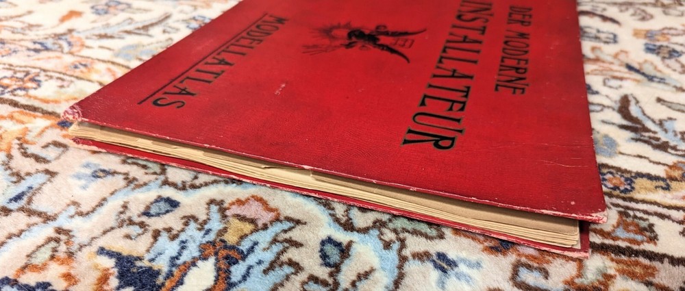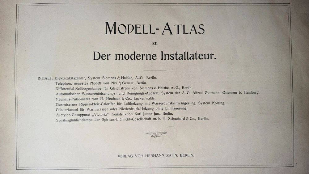 Wonderful German Engineering book with several pop out models depicting the following; 1) Electric Meter 2) Telephone 3) Differential Cable Arc Lamp 4) Automatic Water Cleaning Apparatus 5) Neuhaus Pulsometer 6) Cast-iron Fin Heater 7) Sectional Boiler for Heating 8) Acetylene Gas Apparatus 9) Incandescent Lamp Book is in great shape, and would make a fantastic present for that special engineer or collector.