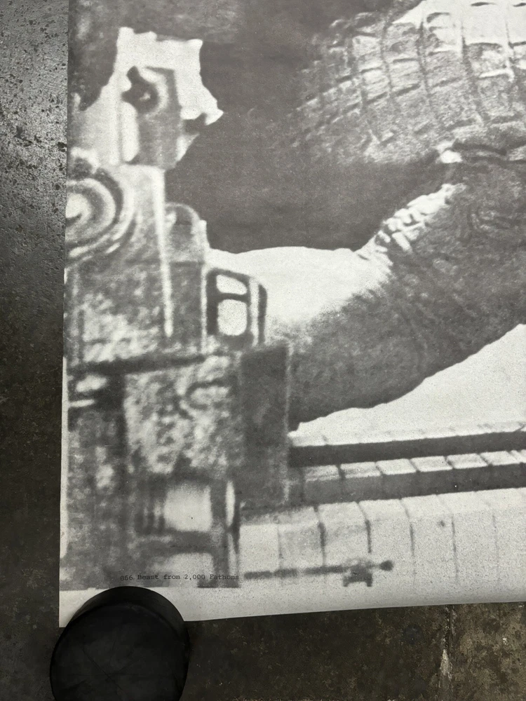 Vintage Godzilla Beast From 2,000 Fathoms Poster 1970's Shipped with USPS mail in craft tube and wrapped poster in craft paper. Keep us as favorite sellers, as we will be listing a beautiful poster collection. All posters have been stored for a long time some acquire more patina than others,so we will show you photos with details of any imperfections. So please look at them. Measures 27 1/4” x 39 1/2”