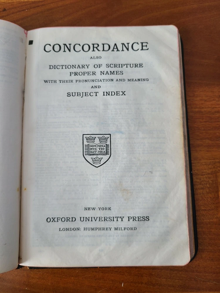 Vintage HOLY BIBLE Oxford University Press Black Leather With Concordance. Condition is "Good". Please see photos for condition. Shipped with USPS Media Mail.