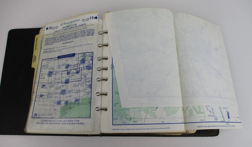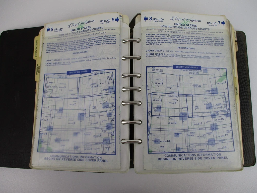 Vintage Jeppesen Airway Manual with Maps Leather Binders in Good Vintage Condition. Approx: 9" x 8" x 2.5"