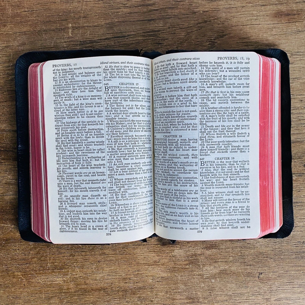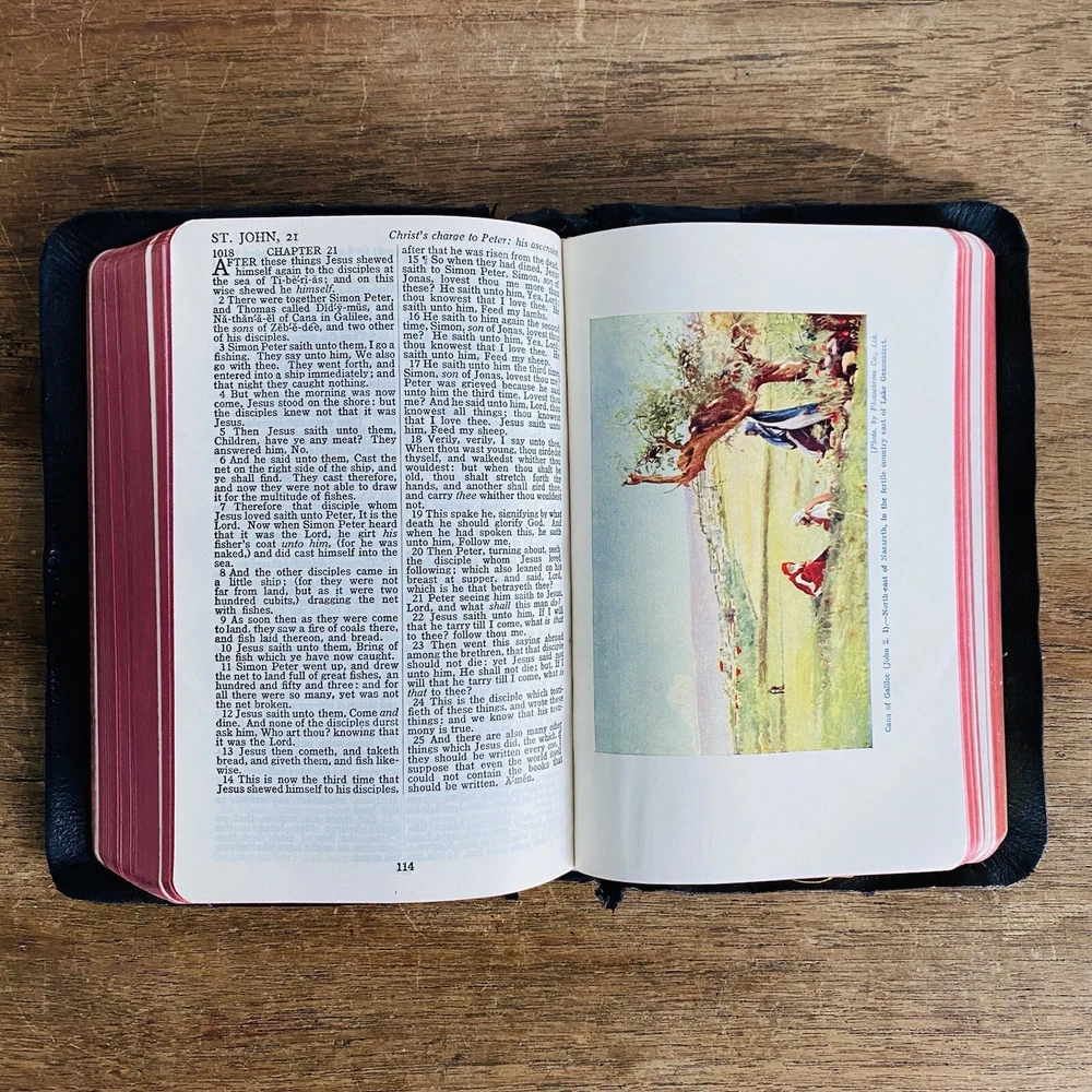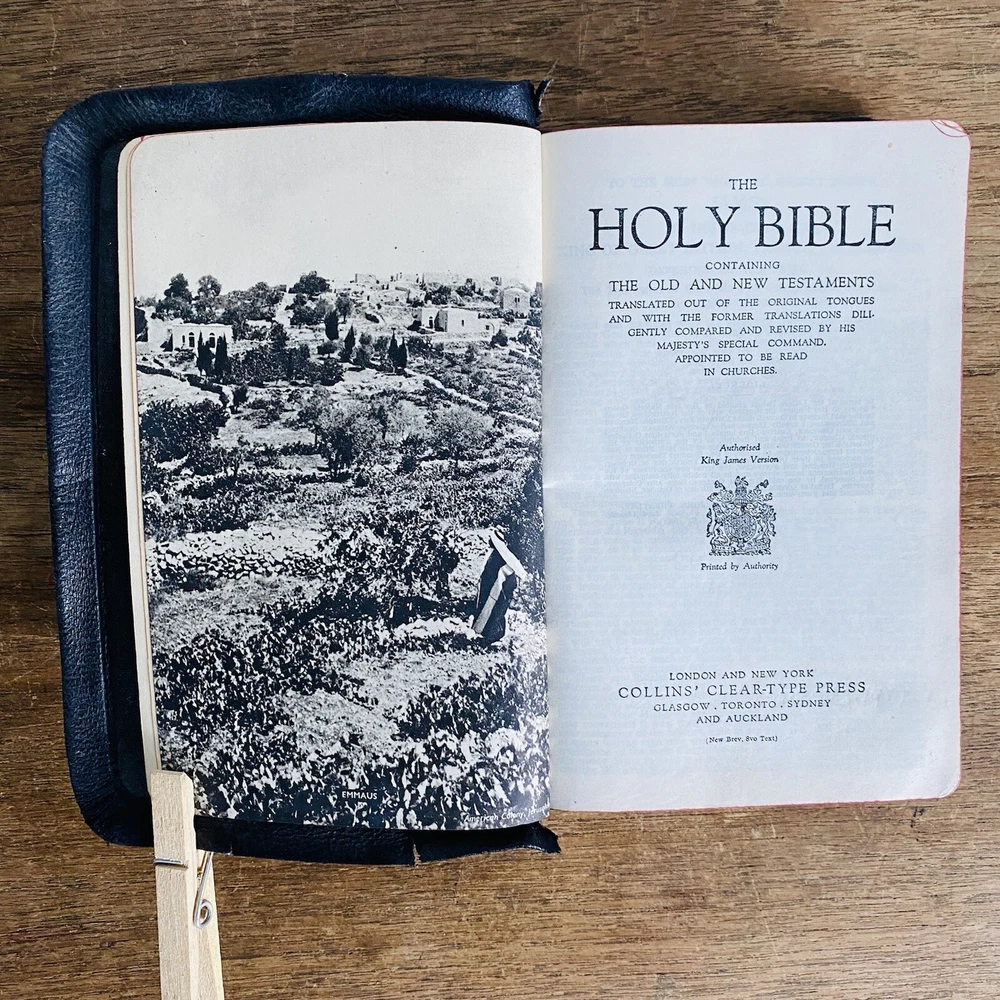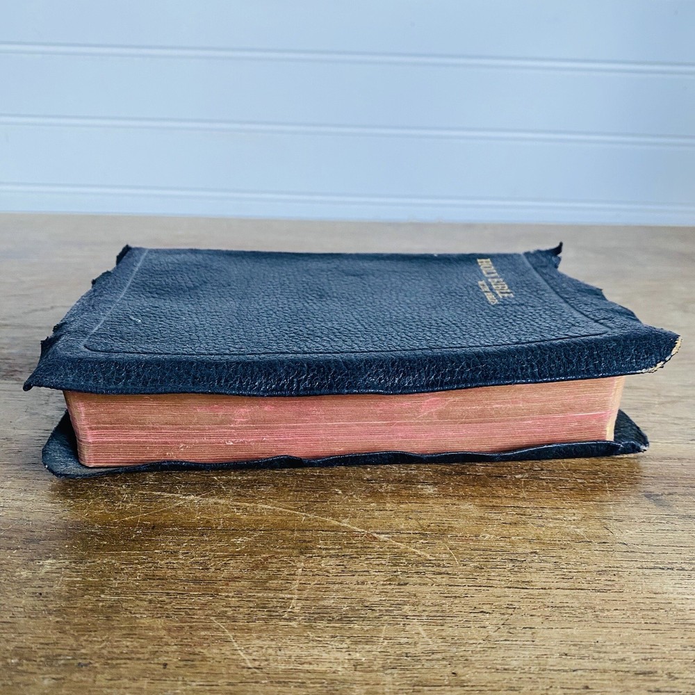 Vintage KJV Holy Bible With Helps Collins Press Leather Maps Photo Illustrated. Condition: Acceptable. Leather is very worn with torn edges. Gilted edges. Binding tight and intact. Free of handwriting or highlighting. Beautiful color photos by Photochrom Co., Ltd. Many maps in the back end including Ancient World Map, ancient Jerusalem, modern jerusalem, Palestine in the time of christ, etc. Maos are revised by Major CR Condor and produced by Wm Collins Sons & Co. Photos are part of the description. Please view all photos for complete detail and condition.