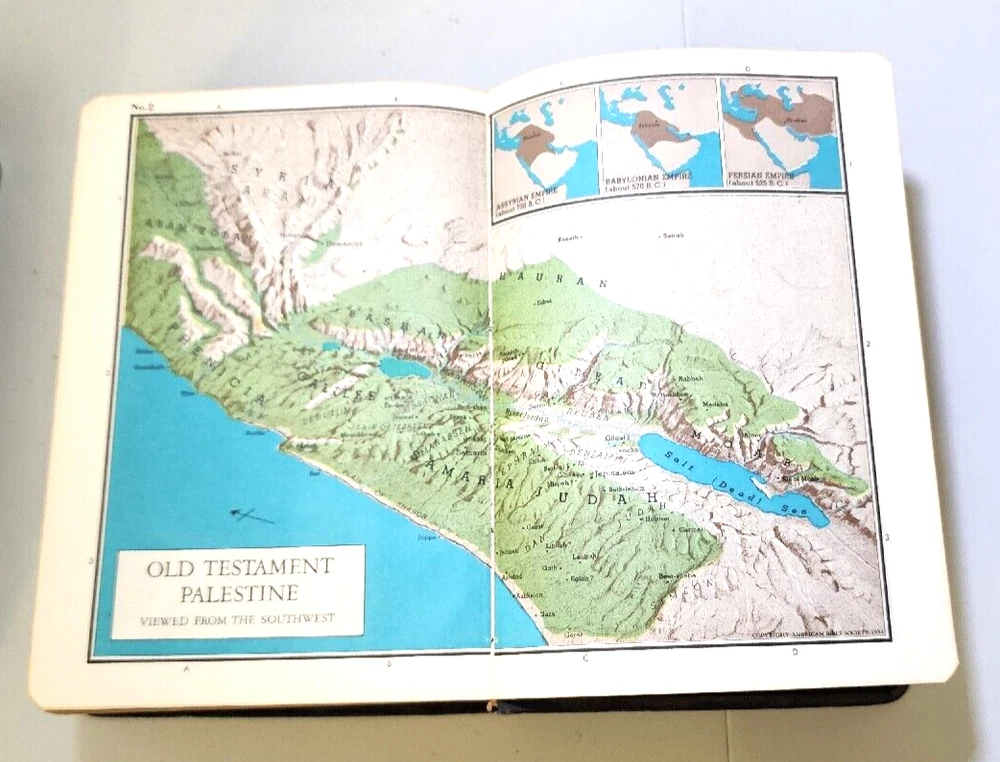Vintage KJV Holy Bible with Maps, American Bible Society, c. 1954 with Leather Cover. 263 pages. The Items are described as accurately as possible. Please examine the attached pictures carefully, as they are part of the description and condition. With the current USPS conditions, there is no guarantee of on time delivery. Always check your tracking for arrival date.