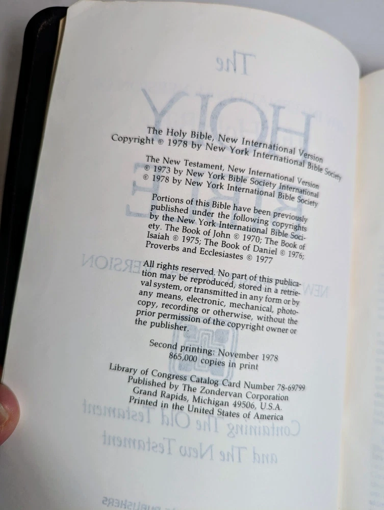 Vintage Zondervan New International Version Black Genuine Cowhide Bible 1978. This vintage, preowned Bible is in excellent condition with no damage throughout and minimal wear (see photos). Cowhide leather exterior is pristine! Initial pages (presented to, marriage, etc) have some writing in them and there is some minor notations/underlining, mostly in NT, some on last pages. Overall, no missing, ripped or bent/folded pages - wonderful condition! Welcome Home Thrifts encourages all reasonable offers. Item ships in clean packing materials from a non-smoking home. All items, with the exception of bedding/linens, are returnable. We try our best to capture the actual color when photographing the item, but we can’t guarantee that our lighting, our photo app, and your monitor’s output will result in an exact match. Buyer pays the actual shipping where noted and we do not barter over same. Keep an eye out for our new treasures by following our shop! Thank you!