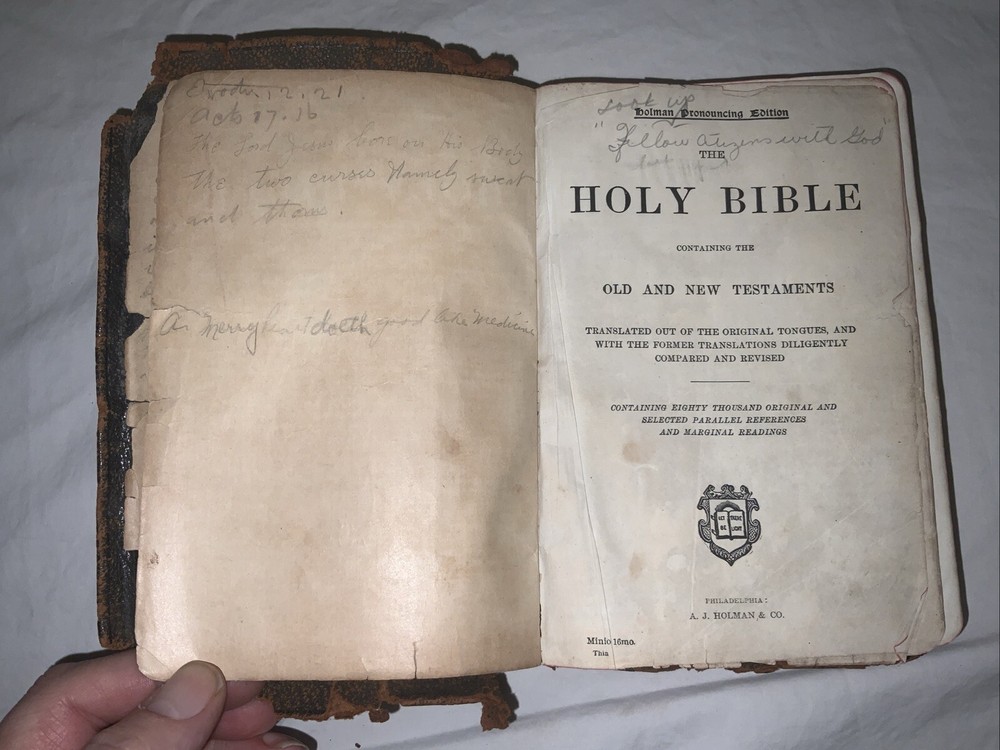 This vintage Holman Pronouncing Edition Bible is a true treasure for collectors! Despite its age and wear—loose pages, tears, and a musty scent—it carries incredible historical charm. The 1904 atlas pages add a unique touch, making it a fascinating piece for restoration or display. Perfect for those who appreciate rare, antique Bibles with character!