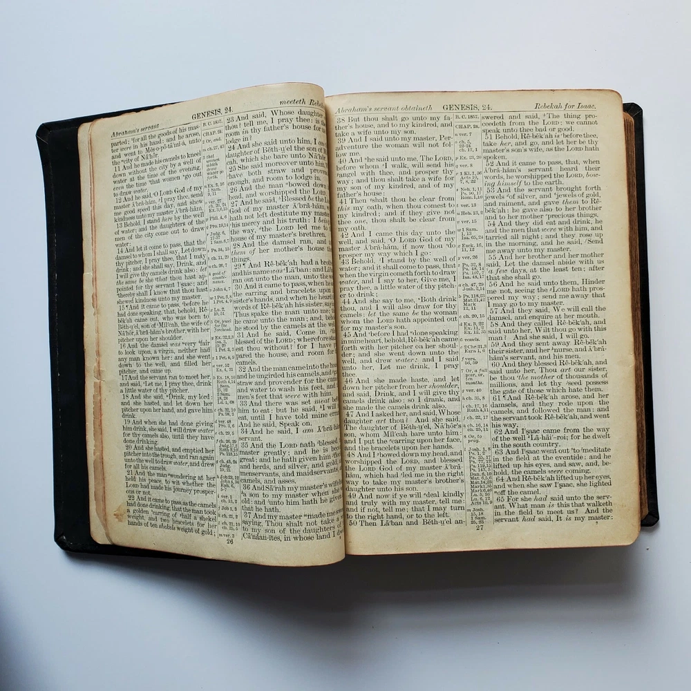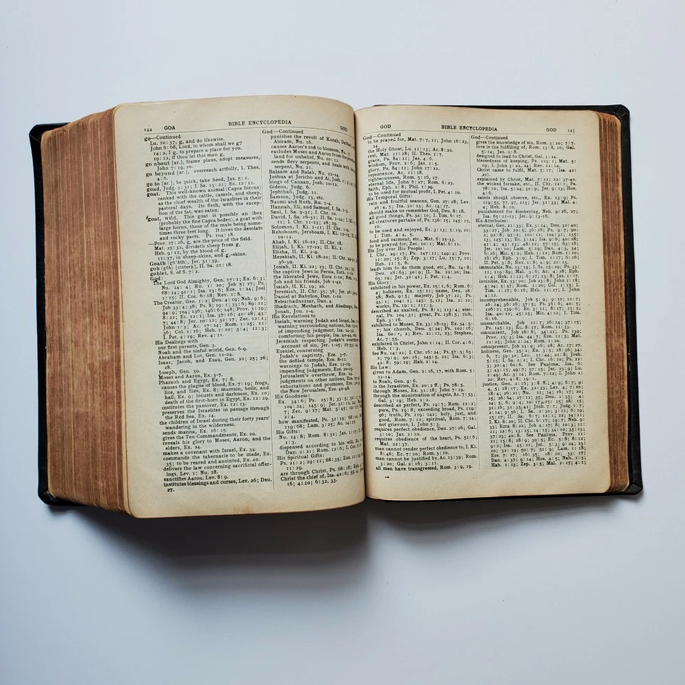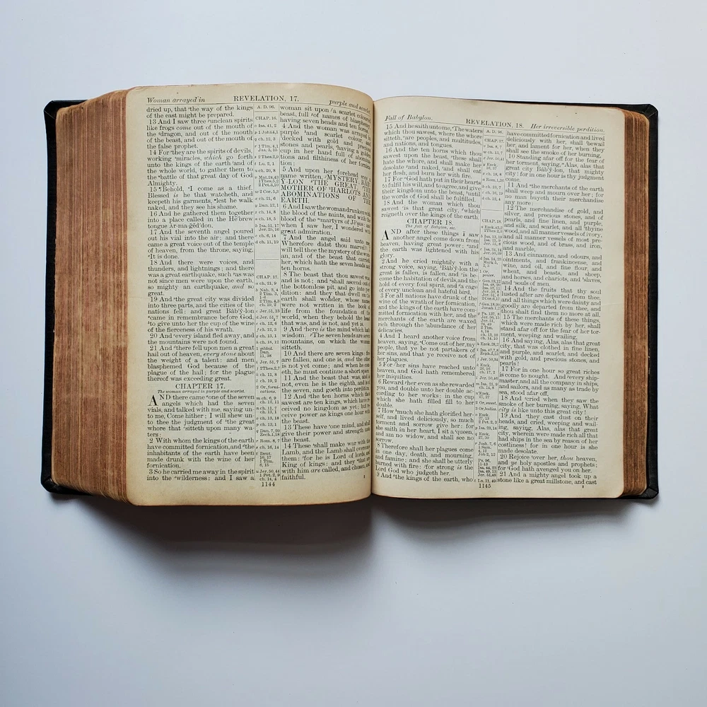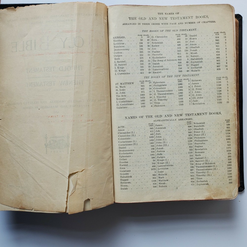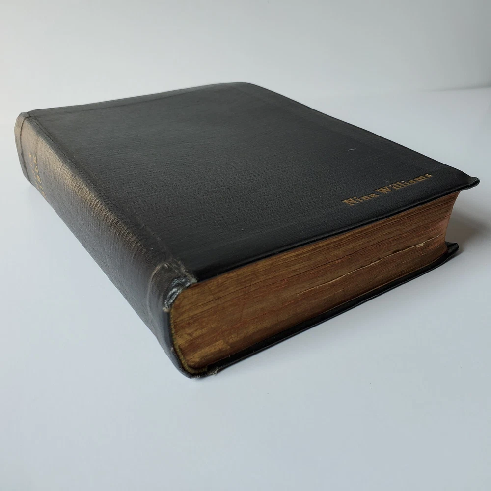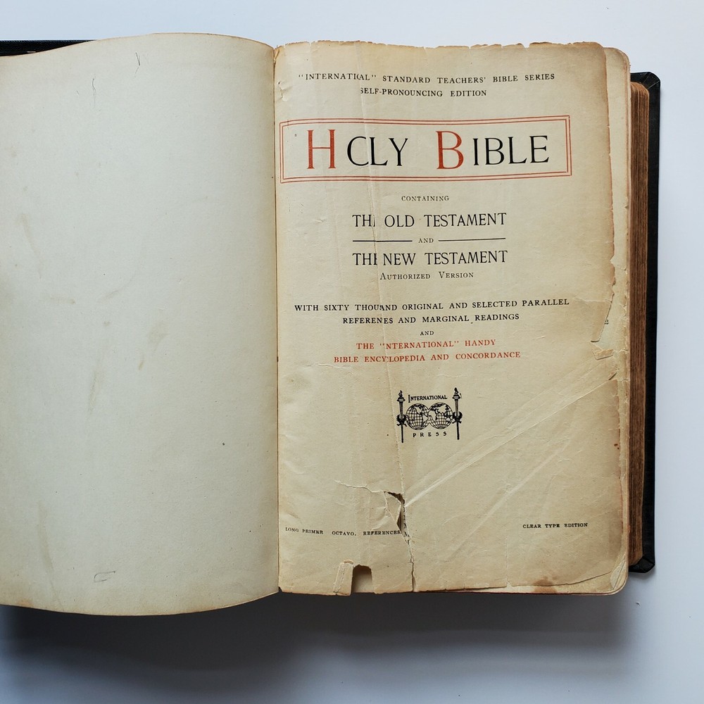 Vintage Holy Bible International Standard Teachers Version Leather Gilded Embossed with Vintage Bookmark. I am unsure of the date but I presume it is at least as old as the calendar bookmark that was in the bible, possibly older. I see no writing. I tried to include the pages with the most wear. For it's age, I would say the pages are in good condition and show average wear. Thank you for shopping at The Real Housewife Department Store!