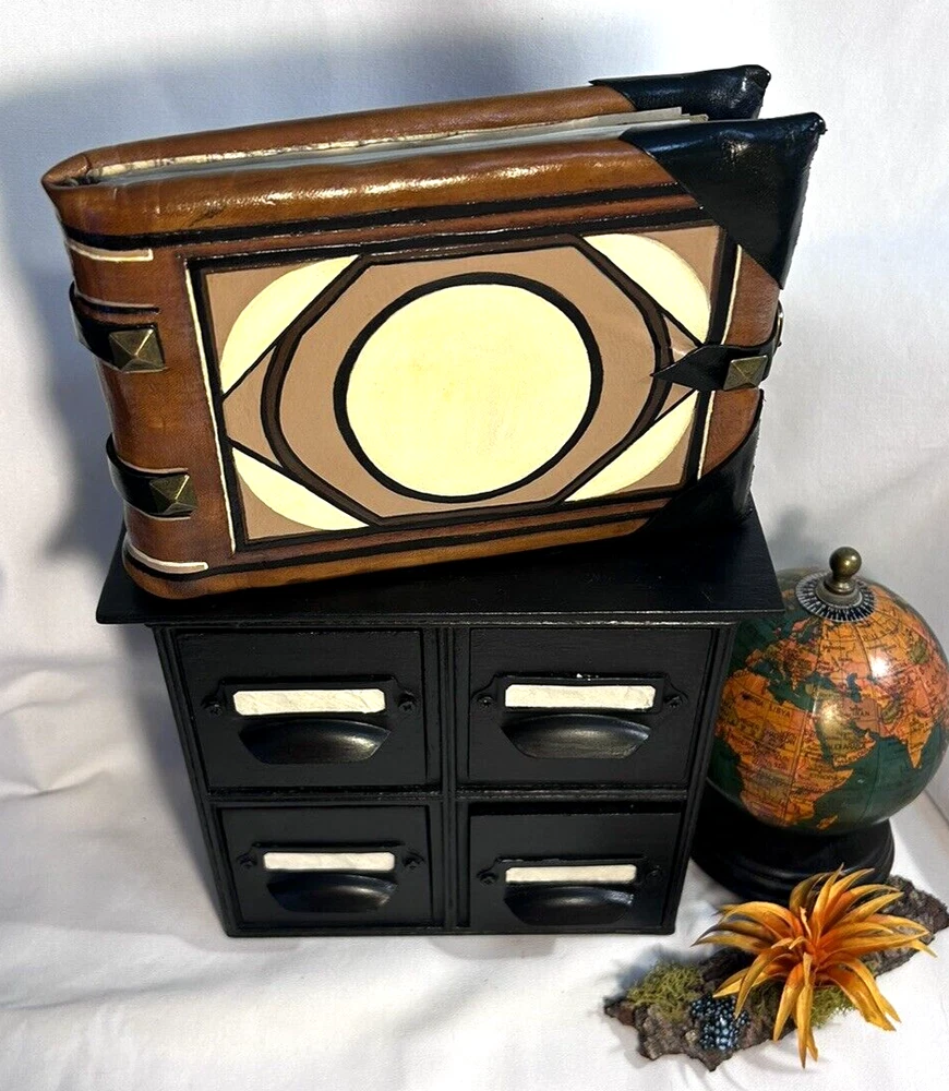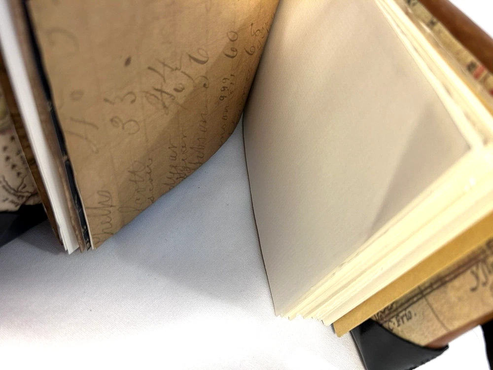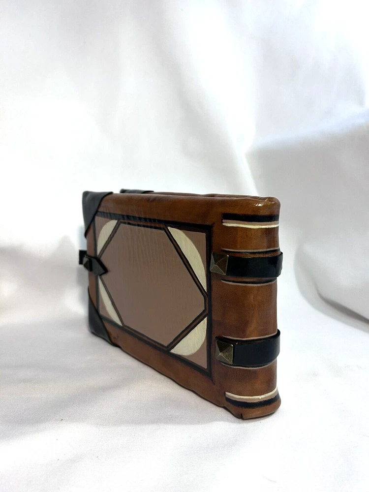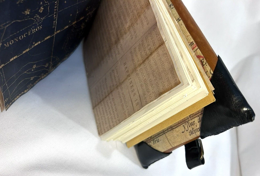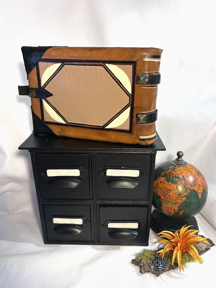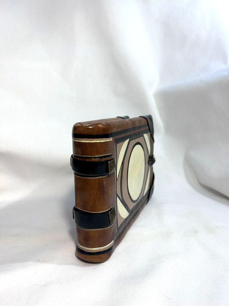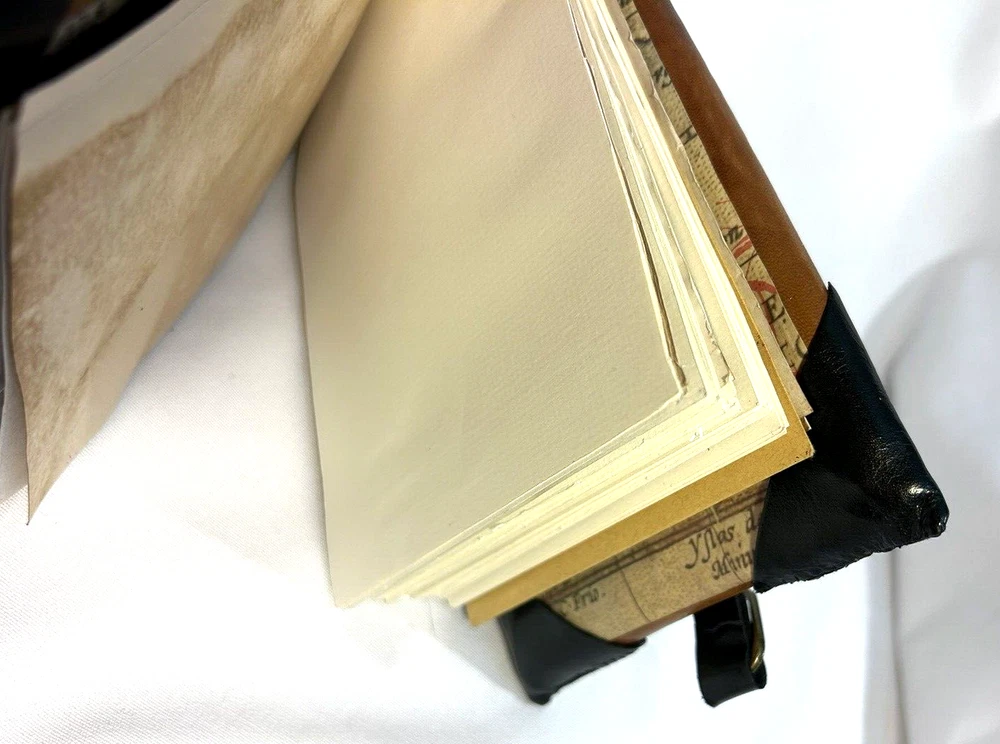 World Map Traveler's Leather Journal/Notebook 134 pages Various blank, lined, and map themed pages, including a secret envelope for covert notes! All pages are aged for an authentic vintage feel and aesthetic Handmade Leather Hardcover and Handsewn Binding 7" Tall x 8" Wide Genuine Leather with vegetable dye Leather strap and buckle closure The World Map Traveler's Leather Journal feels like an undiscovered treasure left over from the likes of Indiana Jones' adventures! The aged pages maintain the durability of "new" while lending the enchanting aesthetic of an "ancient" historical text. With 134 blank and cartography themed pages, this journal is ready to inspire the academic observations and awe-inspiring anecdotes of a life worth living! #SSLB0004 This item is certified One Of A Kind Safar Studios Safar Studios' products are handcrafted in the United States by Natasha Safar with the utmost care and attention to detail. She has been making art and expanding her sales in shops throughout the East Coast , and Mokarran is pleased to be able to offer works from her collection exclusively online. Custom art pieces available upon request CUSTOM ART COMMISSIONS: If you wish to commission a custom piece of art, please contact us with your requests. We will work with you to get all the details right and have Ms. Safar provide you with any designs for approval. We will provide you with details pertaining to cost, time-frames, etc. for your approval. Upon completion of your custom piece(s), we will contact you to work out a convenient time for us to post the item(s) on eBay for the agreed upon cost (a fixed price listing). WE WILL ONLY SELL THROUGH EBAY AT THIS TIME. We apologize for any inconvenience this may present, but that way the sale is covered under both Buyer and Seller Protections. PAYMENT : Payment is requested and expected within three (3) days of the close of the auction/listing (post purchase-date), unless you have contacted us and other arrangements have been made. We ship most items within one (1) day of receiving cleared payment. RETURNS : If you are not 100% satisfied with your purchase, please contact us within 30 days of receiving your item(s). Upon receiving your return, we will issue a full refund of the purchase price (original price + original shipping). In most cases, you, the buyer will be responsible for any return shipping costs. INTERNATIONAL SHIPPING: We ship internationally, but please check the shipping price and service offered prior to bidding or purchasing. We use calculated shipping based upon your location and the weight of the package, which is provided by eBay’s Shipping Calculator. The shipping price you see in the listing is eBay’s calculation for the cost of shipping directly to you; that price does not include any taxes, tariffs, or customs charges that may be incurred at your end. We have no way of calculating taxes, tariffs, or customs duties; they are your responsibility to pay in addition to shipping charges. For more information or details please contact your local post office. Please contact us with any other questions regarding shipping internationally. COMBINED SHIPPING: Whenever possible we combine shipping to save you money. To ensure you get accurate combined shipping, you can request a combined invoice. Please wait until we have sent you an invoice through eBay/PayPal before you pay for items that you wish to have shipped together to ensure accuracy of pricing. ADDITIONAL PICTURES POLICY: Please contact us if you would like to see more pictures of any of the items we have in stock. We strive to give you the best possible representation of the actual item available for purchase; however, we do use stock photos provided by suppliers for many of our items. If you would like more detailed pictures in general or pictures of specific details of an item, please let us know.