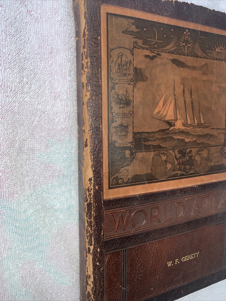 WWII World Atlas, Rand McNally Readers Edition, 1943. Vintage, Leather-Bound.