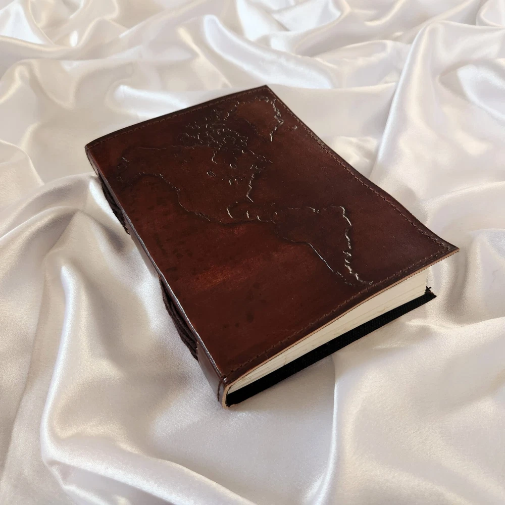 World Map Leather Journal, embossed leather Sketchbook, bound journal, Leather diary, leather notebook, Premium Journal, Vintage Journal. 1. This exquisite World Map Leather Journal is a must-have for any traveler or adventurer. The embossed leather cover features a beautifully detailed map of the world, adding a touch of sophistication to any collection. 2. The bound journal is perfect for sketching, writing, or jotting down notes on-the-go, making it a versatile and practical accessory for those who are always on the move. 3. Crafted from premium quality leather, this leather diary is not only durable but also ages beautifully over time, developing a unique patina that adds to its charm. 4. Whether you're a seasoned explorer or simply appreciate the art of journaling, this vintage-inspired leather notebook is sure to become a cherished companion on all your adventures.