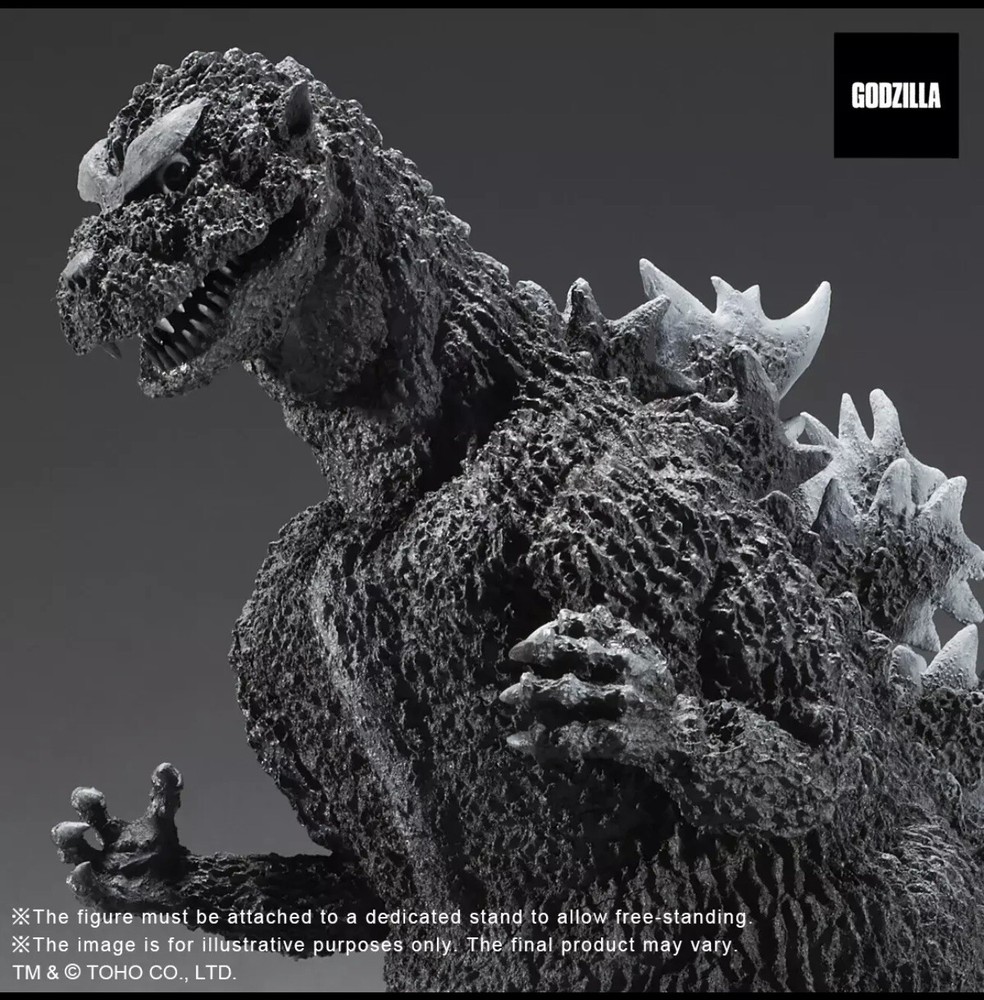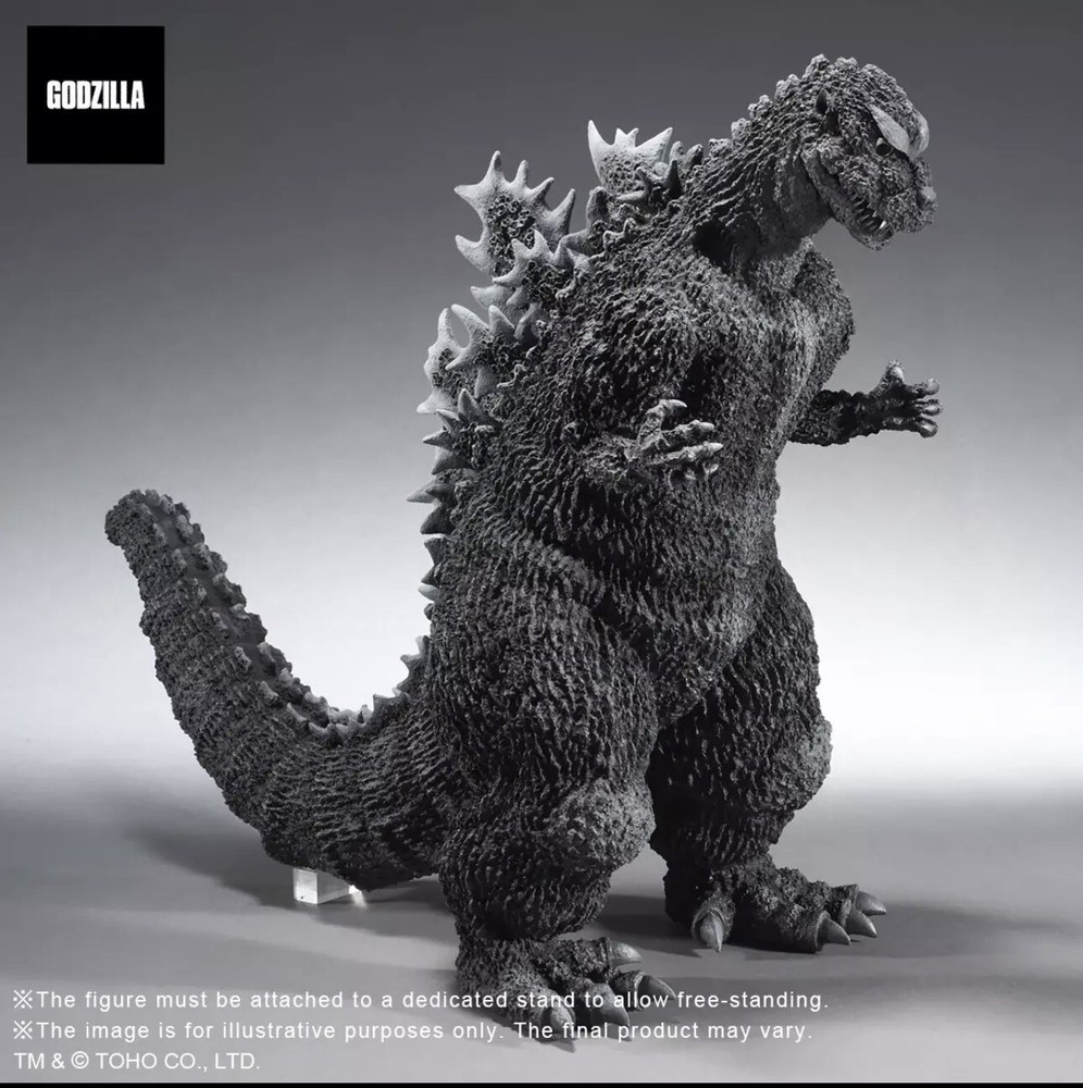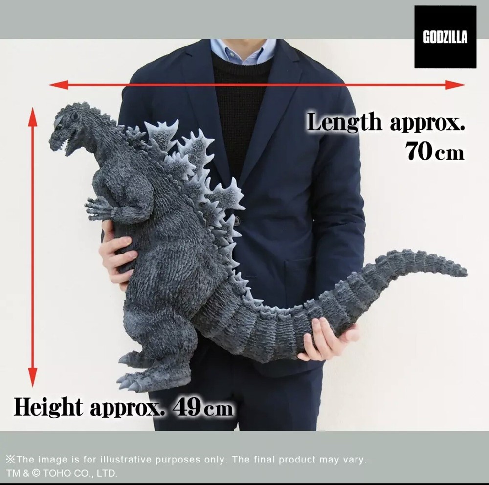 The Godzilla 1954 garage kit released by Inoue Arts in 1986 which shows off Godzilla in its pose as it landed in Tokyo has been transformed into a fully painted soft vinyl figurine standing at 55 cm. tall! In addition to its incredible size, this model created by Inoue Arts (Mr. Inoue) gives off an incredible presence with its spectacular detail that produces a realistic look and shows Godzilla’s incredible power. Additionally, Mr. Inoue took it upon himself to even brush up the detail on the release of this PVC version so that collectors can enjoy this figurine as an updated version of Mr. Inoue’s work! Be sure to get your hands on this impressive figure while you still can! Product Specifications: 20" (49cm) x 28" (70cm)