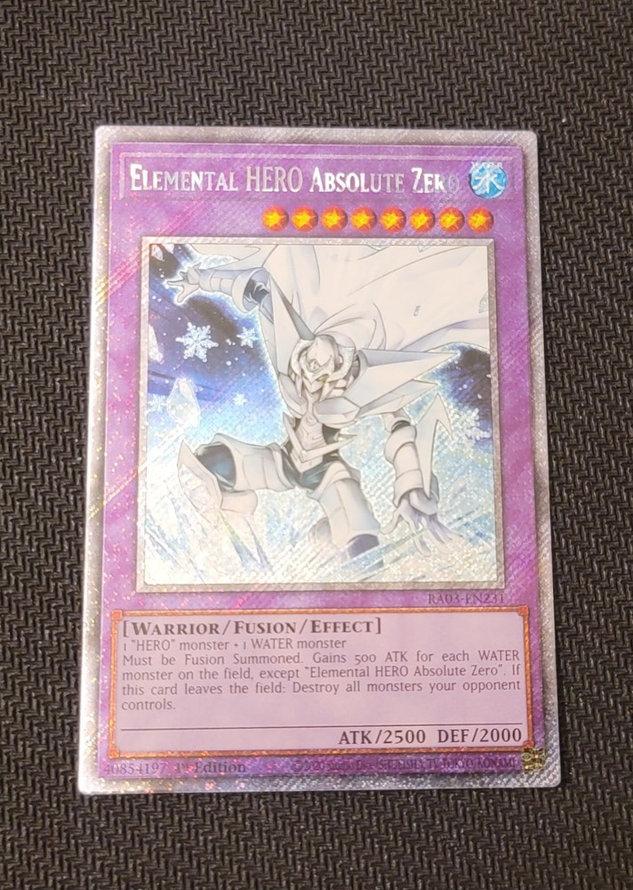 You will receive 1x Elemental Hero Absolute Zero Platinum Secret Rare exactly as pictured above. The card is near mint with no bends tears or creases of any kind. If you have any questions please feel free to message me