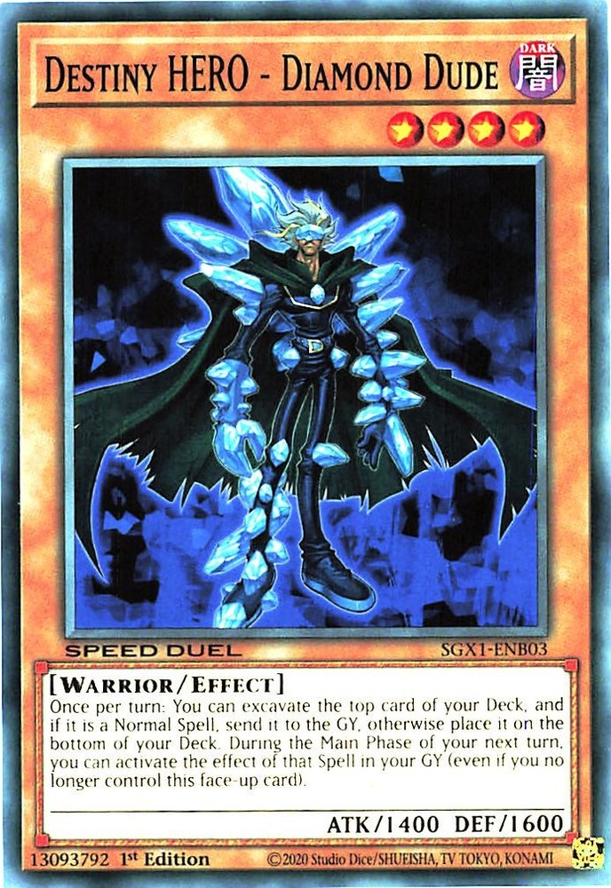Frais de port groupé : La boutique Cartajouer permet de grouper les frais de port (sur votre panier, option demander le total au vendeur en haut à droite, valable unique pour ebay version ordinateur) Grouped shipping costs: The Cartajouer shop allows you to group the shipping costs (on your basket, option to ask the seller for the total at the top right, only valid for ebay computer version) YGO SGX1-ENB03 C Destiny HERO - Diamond Dude The image presenting the product or the card is not contractual, minimal differences may appear. L'image présentant le produit ou la carte n'est pas contractuel, des différences minimes peuvent apparaitre. Prestalia e-commerce solutions.