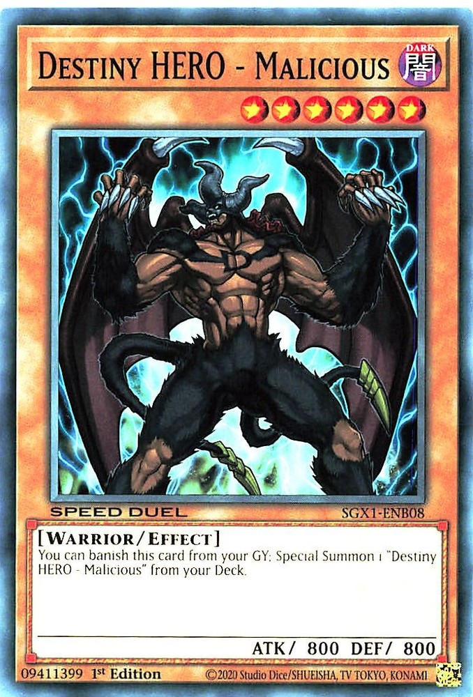 Frais de port groupé : La boutique Cartajouer permet de grouper les frais de port (sur votre panier, option demander le total au vendeur en haut à droite, valable unique pour ebay version ordinateur) Grouped shipping costs: The Cartajouer shop allows you to group the shipping costs (on your basket, option to ask the seller for the total at the top right, only valid for ebay computer version) YGO SGX1-ENB08 C Destiny HERO - Malicious The image presenting the product or the card is not contractual, minimal differences may appear. L'image présentant le produit ou la carte n'est pas contractuel, des différences minimes peuvent apparaitre. Prestalia e-commerce solutions.