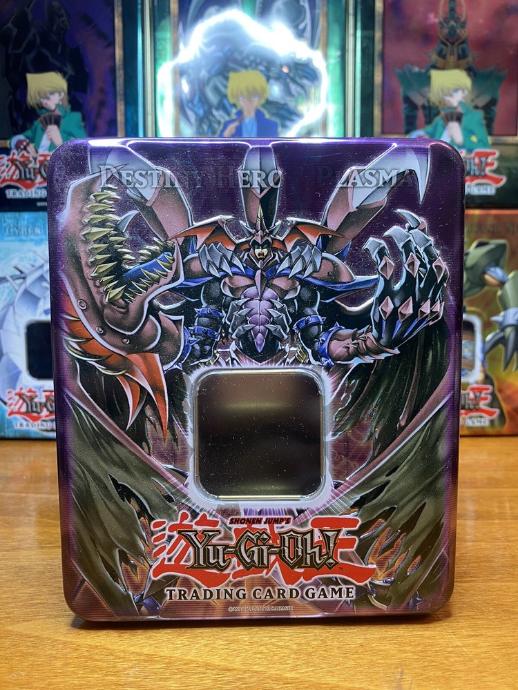 This Yu-Gi-Oh! TCG collectible tin features the 2007 Destiny Hero Plasma design. While the tin is empty, it is a must-have for any fan of the game or collector of CCG items. The tin material is durable and will protect your cards from damage. Use this tin to store your cards or as a decorative piece in your collection. The Destiny Hero Plasma design is a classic and sought-after item. Don't miss your chance to add this empty tin to your collection today!