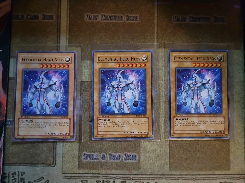 YUGIOH TCG 3X ELEMENTAL HERO NEOS DP03-EN001 COMMON 1ST EDITION NEAR MINT YOU GET WHATS SHOWN IN THE PICTURE AND DESCRIPTION ALL CARDS ARE SHIP WITH PROECTIONS. ALL CARDS THAT IS BELOW 20$ WELL BE SHIP IN PWE WITH EBAY TRACKING. 24$-21$ CARDS WELL BE WITH STAMPS PWE. CARDS ABOVE 25$ WELL BE SHIP IN BUBBLE MAIL WITH USPS GROUND SHIPPING TRACKING. IF YOUR ORDERS ADDS UP TO 25$ OR ABOVE IT WOULD BE ALSO IN A BUBBLE MAILER. IF YOU ARE FROM PUERTO RICO AND ARE BUYING MAKE SURE YOU HAVE "COUNTRY LIST AS UNITED STATES NOT PRI" OR ELSE I CAN'T PRINT EBAYSHIPPING LABEL WITH TRACKING AND WELL SENT ITEM BY STAMPS TO YOU. THANKS. To international buyers since I have been having many buyers that are using Fright Forward Services. YOU ARE BUYING AT YOUR OWN RISK. As I list in my description, I ship using PWE (Plain White Envelope) for cards that does not reach $25 and above. I do not know how the Fright Services pack it after mailing it to them. All I know is that many of the PWE does not make it to its original destination (your real home address) either it's the Fright Services fault for not packing it in bubble mailer or Usps for losing it in transit. If it is being send by PWE by the Fright Services, it made take months before getting there. Also, in case if its lost or does not make it to its destination you must direct your attention to the Fright Services before contacting me. It is not my responsibly for lost mail(item) due to 3rd party delivery. To make sure you get your cards to you faster and more accuracy you must order cards combining to $25 or above that way I can use Ground Advantage and send it in bubble mailer most of the bubble mailer I use will make it to its destination. Thank you. IF YOU CAN LEAVE FEEDBACKS THAT WOULD BE MUCH APPRECIATE THANK YOU FOR BUYING.