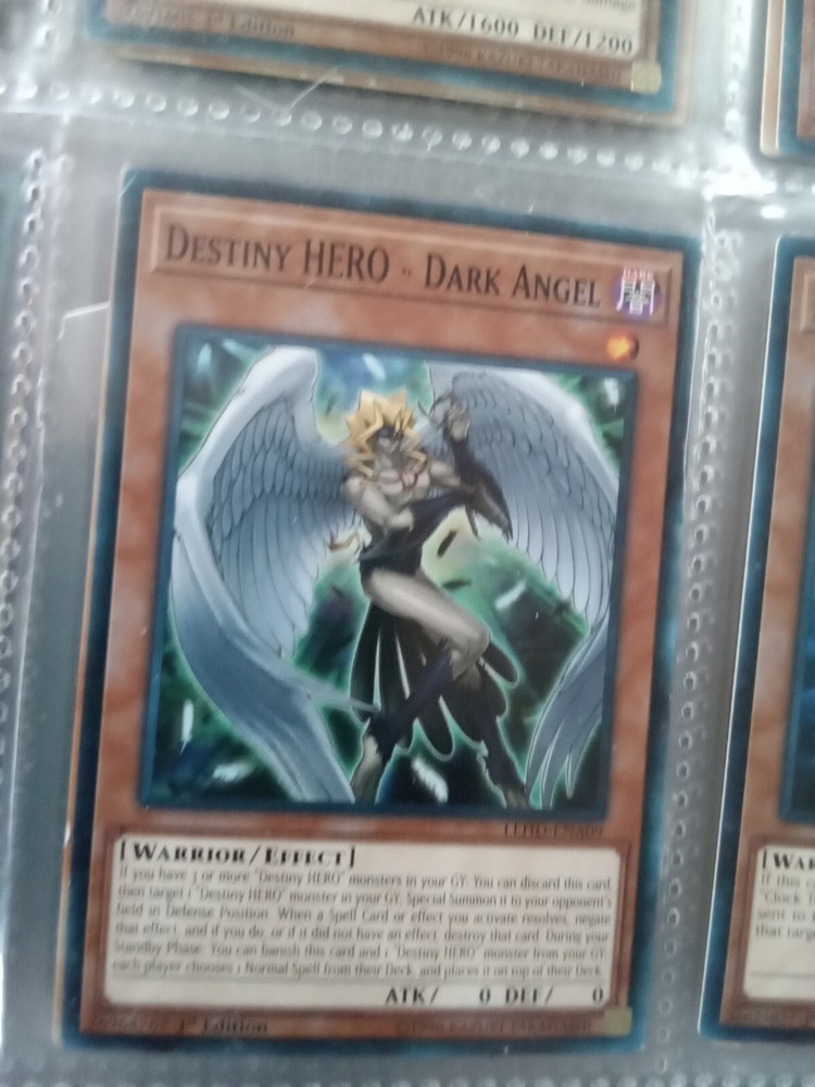 Elevate your Yu-Gi-Oh! TCG strategy with the Destiny HERO - Dark Angel card, model number DESO-EN005. This captivating card features the Darkness attribute, bringing a new level of intrigue and power to your deck. The Dark Angel's wings spread wide, ready to soar into battle. With striking artwork that vividly captures the essence of its character, this card is a must-have for any serious Yu-Gi-Oh! player or collector. The Destiny HERO series is renowned for its strategic advantages, and with the Dark Angel at your side, you're sure to leave an impression on the playing field.