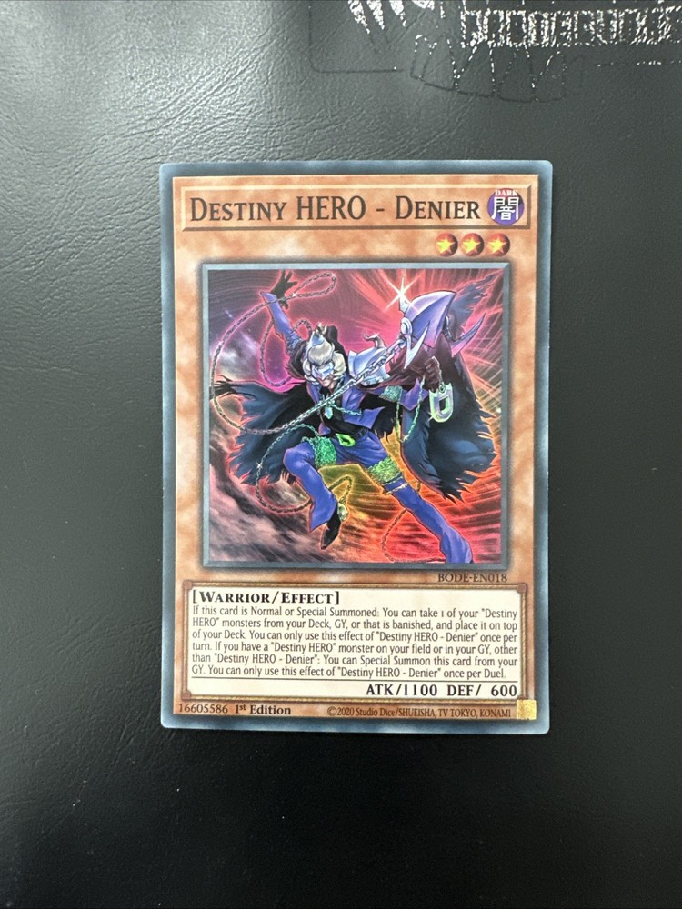 This Destiny Hero Denier card is a fantastic addition to any Yu-Gi-Oh deck—super rare, 1st edition, and in great condition! The seller ships it safely with a sleeve and toploader, plus their competitive pricing and reliable service make buying a breeze. Follow them on social media for more awesome deals—highly recommended for collectors and duelists alike!