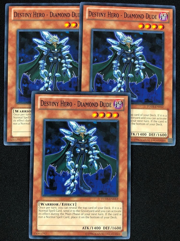 Got three Diamond Dude cards in perfect condition—exactly as described! Seller is super reliable and cares about customer satisfaction. Fast shipping, great communication, and a smooth transaction. Highly recommend for Yu-Gi-Oh players looking for this Destiny Hero staple. Will definitely buy from them again!