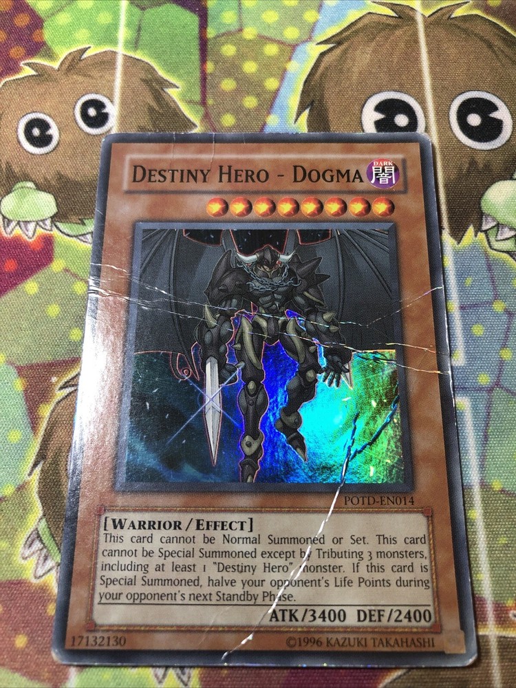 YUGIOH DESTINY HERO DOGMA POTD-EN014 SUPER HP/CREASES. Condition is Ungraded. Shipped with USPS Ground Advantage....