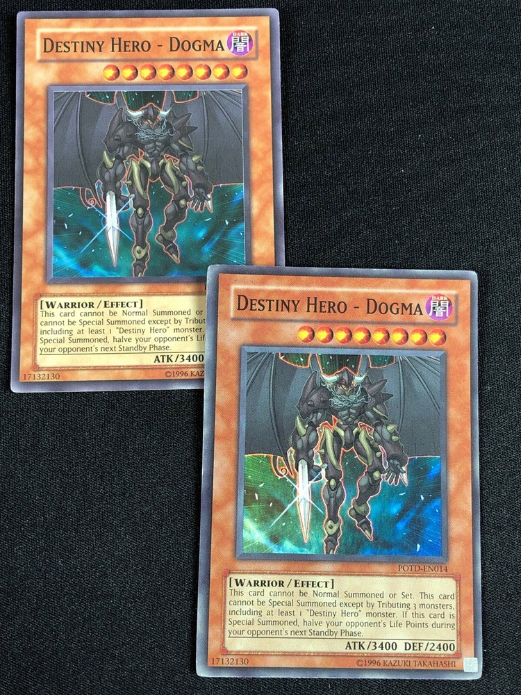 Just got these two Destiny Hero Dogma cards and they're absolutely perfect! Super rare condition is flawless, exactly as described. Seller is super responsive too—highly recommend this seller for any Yu-Gi-Oh collector!