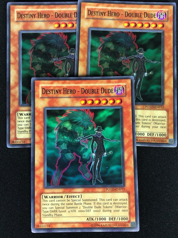 YUGIOH DESTINY HERO DOUBLE DUDE POTD-EN012 SUPER X3 (NM) ALL CARDS IN THIS AUCTION ARE IN NEAR MINT TO MINT CONDITION UNLESS STATED OTHERWISE IN THE TITLE. AND, YOU ARE GUARANTEED TO RECEIVE THE CARD NAMED IN THE TITLE. PLEASE NOTE, IF THERE'S MORE THAN 1 COPY AVAILABLE, YOU MAY NOT RECIEVE THE SAME EXACT CARD IN THE PHOTO. HOWEVER, IT WILL BE THE SAME EXACT CARD IN THE TITLE, AND DESCRIPTION! PLEASE CONTACT ME IF THERE IS ANYTHING WRONG WITH YOUR ORDER OR SHIPPING BEFORE LEAVING FEEDBACK. PLEASE GIVE ME A CHANCE TO FIX ANY PROBLEM YOU MAY HAVE. THANK YOU! Shipping Information: Shipping and Handling for this auction will be Free inside the United States - With Tracking! International Shipping Available Through Ebay’s Global Shipping Program. (BUYER IS RESPONSIBLE FOR ANY TAX) **Read the TITLE to see the condition of the cards Before you place a bid. Any damaged cards will be listed as such In The Title (FOR EXAMPLE: Blue Eyes White Dragon LOB-001 (HP) If it doesn't say anything about damage, it is in near-mint to mint condition. If you have any questions, message me Before you place your bid.** *PLEASE READ* Ebay's Card Condition Guidelines: (NM) = Near mint or better Comparable to a fresh pack Flaws may include Minor corner and edge wear (LP) = Lightly played (Excellent) Has clearly visible signs of wear Flaws may include Moderate edge chipping Moderate surface scuffing Fuzzy corners (MP) = Moderately played (Very good) Has moderate-to-heavy damage all over Flaws may include Moderate discoloration Moderate creasing Moderate to heavy edge chipping Rounding and soft corner (HP) = Heavily played (Poor) Is extremely worn and displays flaws all over Heavily Played condition cards exhibit signs of heavy wear. Heavily Played condition cards may include cards that have significant creasing, folding, severe water damage, heavy whitening, heavy border wear, and/or tearing. RETURN POLICY: RETURNS ARE ACCEPTED IF THE ITEM ARRIVES DAMAGED, OR NOT AS DESCRIBED. RETURNS ARE NOT ACCEPTED FOR BUYERS REMORSE. CHECK OUT MY OTHER AUCTIONS! _gsrx_vers_1680 (GS 9.8.3 (1680))