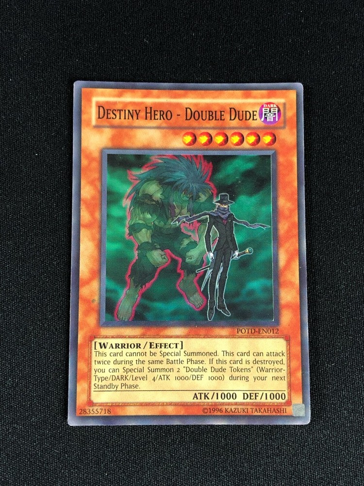 YUGIOH DESTINY HEROI DOUBLE DUDE POTD-EN012 SUPER PLAY/EDGEWARE ALL CARDS IN THIS AUCTION ARE IN NEAR MINT TO MINT CONDITION UNLESS STATED OTHERWISE IN THE TITLE. AND, YOU ARE GUARANTEED TO RECEIVE THE CARD NAMED IN THE TITLE. PLEASE NOTE, IF THERE'S MORE THAN 1 COPY AVAILABLE, YOU MAY NOT RECIEVE THE SAME EXACT CARD IN THE PHOTO. HOWEVER, IT WILL BE THE SAME EXACT CARD IN THE TITLE, AND DESCRIPTION! PLEASE CONTACT ME IF THERE IS ANYTHING WRONG WITH YOUR ORDER OR SHIPPING BEFORE LEAVING FEEDBACK. PLEASE GIVE ME A CHANCE TO FIX ANY PROBLEM YOU MAY HAVE. THANK YOU! Shipping Information: Shipping and Handling for this auction will be Free inside the United States - With Tracking! International Shipping Available Through Ebay’s Global Shipping Program. (BUYER IS RESPONSIBLE FOR ANY TAX) **Read the TITLE to see the condition of the cards Before you place a bid. Any damaged cards will be listed as such In The Title (FOR EXAMPLE: Blue Eyes White Dragon LOB-001 - Play/Edgewear). If it doesn't say anything about damage, it is in near-mint to mint condition. If you have any questions, message me Before you place your bid.** RETURN POLICY: RETURNS ARE ACCEPTED IF THE ITEM ARRIVES DAMAGED, OR NOT AS DESCRIBED. RETURNS ARE NOT ACCEPTED FOR BUYERS REMORSE. CHECK OUT MY OTHER AUCTIONS! _gsrx_vers_1516 (GS 9.3 (1516))