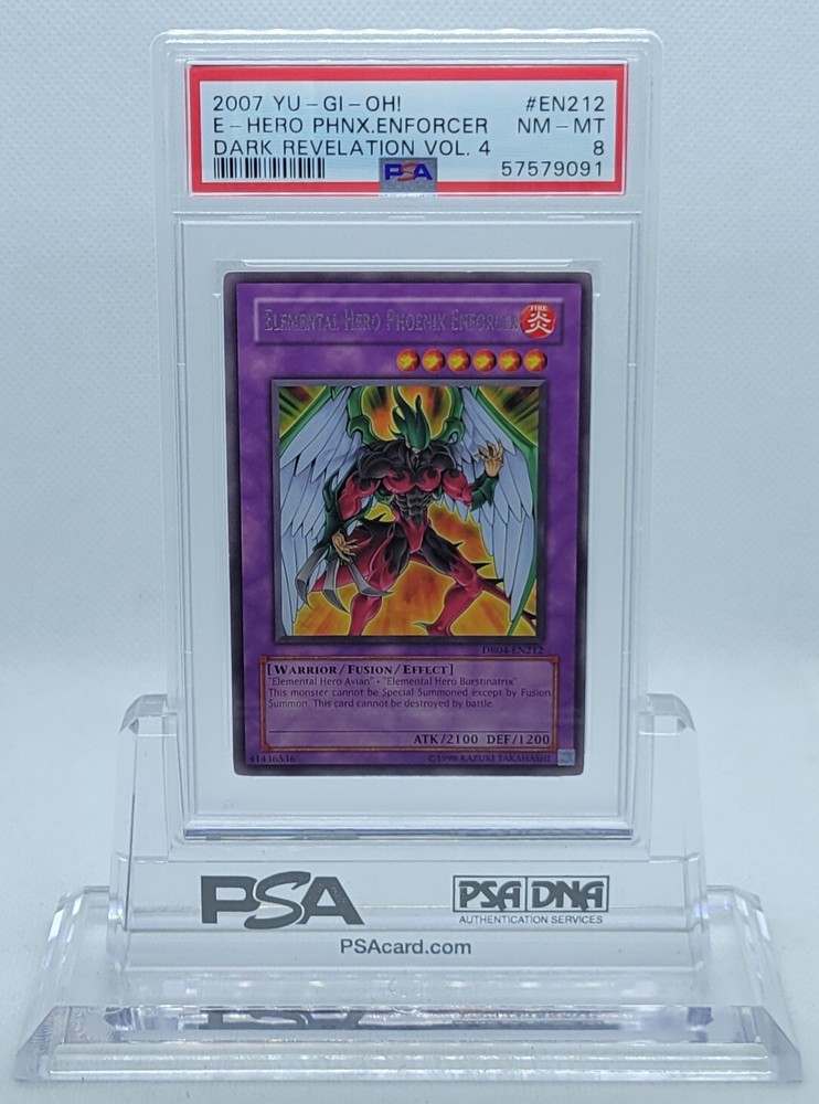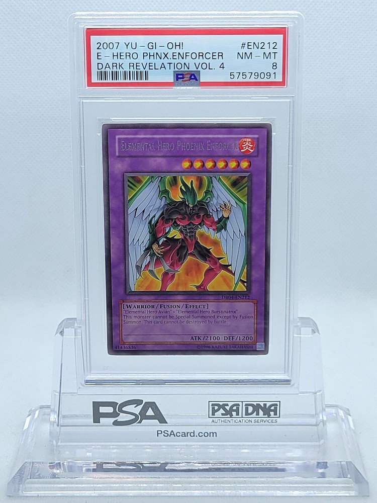 Description Condition: PSA 8 NM-MINT Availability: In Stock You are Purchasing YUGIOH DR04-EN212 ELEMENTAL HERO PHOENIX ENFORCER RARE PSA 8 NM-MT #57579091 Professionally graded by Professional Sports Authenticator (PSA) *PLEASE REVIEW PHOTO(S) BEFORE BIDDING/BUYING. >>MORE GRADED YUGIOH CARDS<< IG: CARD_RUSH_INC Payment Options Payment is expected within 7 days of your purchase date. We accept all forms of payments through Paypal. Shipping and Handling We ship to all U.S. states, U.S. territories, APO/FPO locations and any international countries listed under our "ship to" heading. Shipping and Handling is calculated based on the combined shipping weight of your item(s). Please use the shipping calculator to estimate your shipping and handling charges. In order to qualify for combined shipping terms, all items must be paid for in one payment; please do not pay until you are done bidding/shopping. Please contact us if you have any questions regarding our shipping and handling terms. Shipping and Delivery Packages are shipped out every Monday, Wednesday, and Friday. Domestic Packages take approximately 2-7 days to arrive. International packages may take a little longer to arrive, typically 1-4 weeks. Please allow ample transit times before inquiring about your package, thank you. Sales Tax Sales tax will be automatically collected by Ebay. Customer Service We will make every effort to get your purchase is mailed in a timely manner. Please contact us if you have any questions or concerns; we would love to hear any suggestions you have on how we can improve your eBay experience. Thank you for visiting us today.