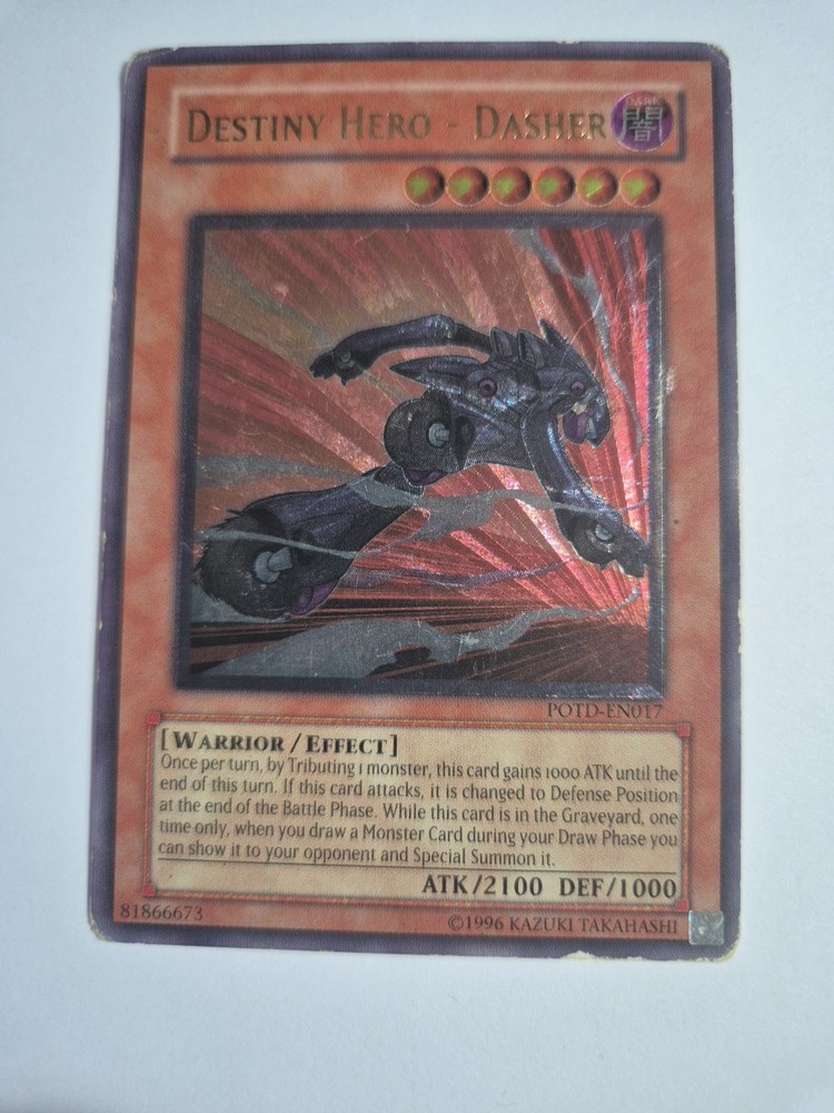 YUGIOH Destiny HERO - Dasher (POTD-EN017) Ultimate Rare Played. Condition is Ungraded. Dispatched with Royal Mail 2nd Class.