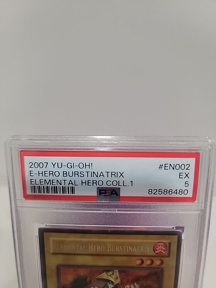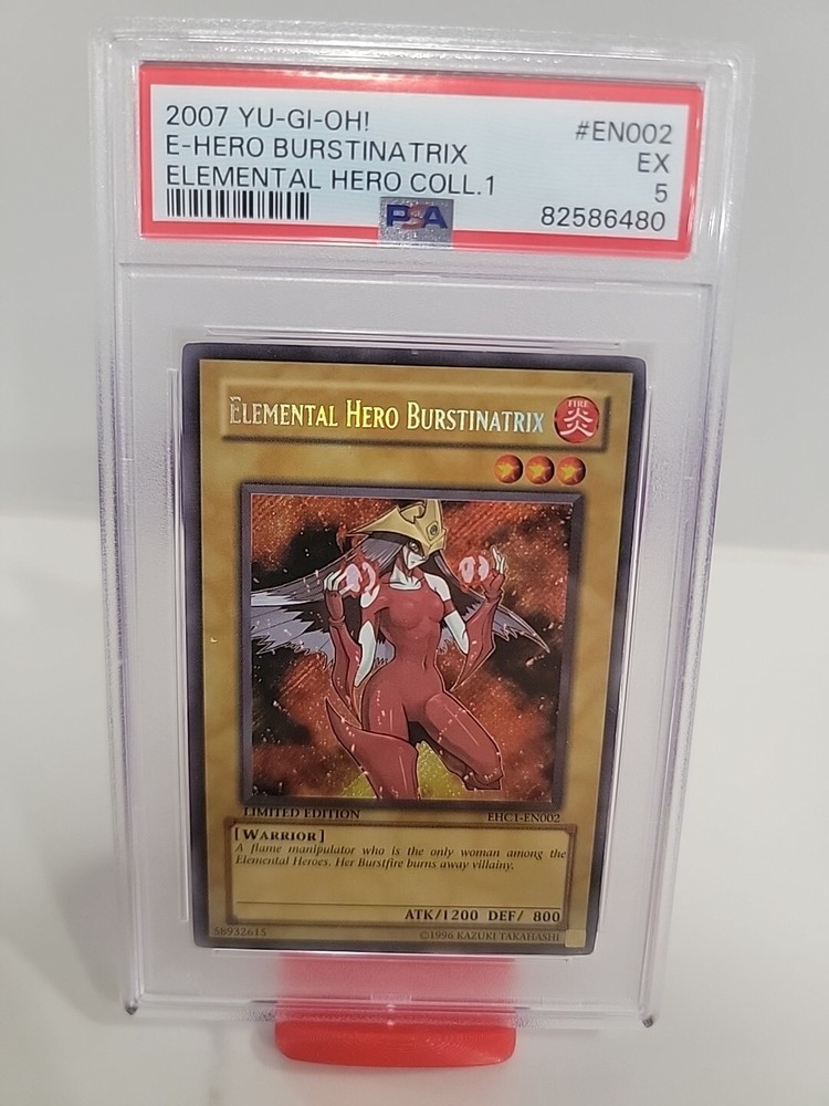 Description Condition: PSA 7 NM Availability: In Stock You are Purchasing YUGIOH EHC1-EN002 ELEMENTAL HERO BURSTINATRIX SECRET RARE HOLO PSA 7 NM #* Professionally graded by Professional Sports Authenticator (PSA) *PSA CERTIFICATE NUMBER MAY VARY FROM PHOTO(S). >>MORE GRADED YUGIOH CARDS<< IG: CARD_RUSH_INC Payment Options Payment is expected within 7 days of your purchase date. We accept all forms of payments through Paypal. Shipping and Handling We ship to all U.S. states, U.S. territories, APO/FPO locations and any international countries listed under our "ship to" heading. Shipping and Handling is calculated based on the combined shipping weight of your item(s). Please use the shipping calculator to estimate your shipping and handling charges. In order to qualify for combined shipping terms, all items must be paid for in one payment; please do not pay until you are done bidding/shopping. Please contact us if you have any questions regarding our shipping and handling terms. Shipping and Delivery Packages are shipped out every Monday, Wednesday, and Friday. Domestic Packages take approximately 2-7 days to arrive. International packages may take a little longer to arrive, typically 1-4 weeks. Please allow ample transit times before inquiring about your package, thank you. Sales Tax Sales tax will be automatically collected by Ebay. Customer Service We will make every effort to get your purchase is mailed in a timely manner. Please contact us if you have any questions or concerns; we would love to hear any suggestions you have on how we can improve your eBay experience. Thank you for visiting us today.