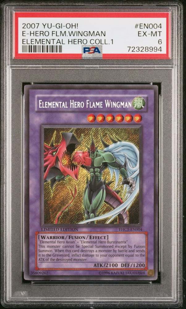 Description Condition: PSA 6 EX-MT Availability: In Stock You are Purchasing YUGIOH EHC2-EN001 ELEMENTAL HERO SPARKMAN SECRET RARE PSA 6 EX #72328995 Professionally graded by Professional Sports Authenticator (PSA) *PLEASE REVIEW PHOTO(S) BEFORE PURCHASING >>MORE GRADED YUGIOH CARDS<< Payment Options Payment is expected within 7 days of your purchase date. We accept all forms of payments through Paypal. Shipping and Handling We ship to all U.S. states, U.S. territories, APO/FPO locations and any international countries listed under our "ship to" heading. Shipping and Handling is calculated based on the combined shipping weight of your item(s). Please use the shipping calculator to estimate your shipping and handling charges. In order to qualify for combined shipping terms, all items must be paid for in one payment; please do not pay until you are done bidding/shopping. Please contact us if you have any questions regarding our shipping and handling terms. Shipping and Delivery Packages are shipped out every Monday, Wednesday, and Friday. Domestic Packages take approximately 2-7 days to arrive. International packages may take a little longer to arrive, typically 1-4 weeks. Please allow ample transit times before inquiring about your package, thank you. Sales Tax All orders shipped to a California address will be subject to Sales Tax. Sales Tax is calculated on the item's price and is not applied to the shipping or other charges. Customer Service We will make every effort to get your purchase is mailed in a timely manner. Please contact us if you have any questions or concerns; we would love to hear any suggestions you have on how we can improve your eBay experience. Thank you for visiting us today.