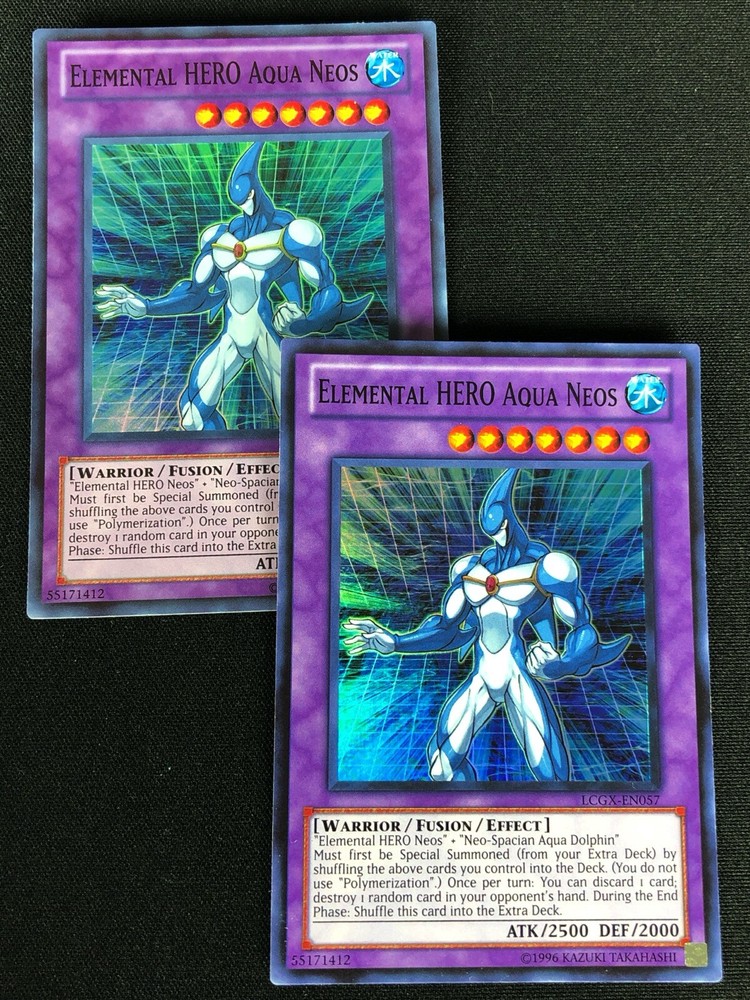 YUGIOH ELEMENTAL HERO AQUA NEOS LCGX-EN057 SUPER X2 (NM) ALL CARDS IN THIS AUCTION ARE IN NEAR MINT TO MINT CONDITION UNLESS STATED OTHERWISE IN THE TITLE. AND, YOU ARE GUARANTEED TO RECEIVE THE CARD NAMED IN THE TITLE. PLEASE NOTE, IF THERE'S MORE THAN 1 COPY AVAILABLE, YOU MAY NOT RECIEVE THE SAME EXACT CARD IN THE PHOTO. HOWEVER, IT WILL BE THE SAME EXACT CARD IN THE TITLE, AND DESCRIPTION! PLEASE CONTACT ME IF THERE IS ANYTHING WRONG WITH YOUR ORDER OR SHIPPING BEFORE LEAVING FEEDBACK. PLEASE GIVE ME A CHANCE TO FIX ANY PROBLEM YOU MAY HAVE. THANK YOU! Shipping Information: Shipping and Handling for this auction will be Free inside the United States - With Tracking! International Shipping Available Through Ebay’s Global Shipping Program. (BUYER IS RESPONSIBLE FOR ANY TAX) **Read the TITLE to see the condition of the cards Before you place a bid. Any damaged cards will be listed as such In The Title (FOR EXAMPLE: Blue Eyes White Dragon LOB-001 (HP) If it doesn't say anything about damage, it is in near-mint to mint condition. If you have any questions, message me Before you place your bid.** *PLEASE READ* Ebay's Card Condition Guidelines: (NM) = Near mint or better Comparable to a fresh pack Flaws may include Minor corner and edge wear (LP) = Lightly played (Excellent) Has clearly visible signs of wear Flaws may include Moderate edge chipping Moderate surface scuffing Fuzzy corners (MP) = Moderately played (Very good) Has moderate-to-heavy damage all over Flaws may include Moderate discoloration Moderate creasing Moderate to heavy edge chipping Rounding and soft corner (HP) = Heavily played (Poor) Is extremely worn and displays flaws all over Heavily Played condition cards exhibit signs of heavy wear. Heavily Played condition cards may include cards that have significant creasing, folding, severe water damage, heavy whitening, heavy border wear, and/or tearing. RETURN POLICY: RETURNS ARE ACCEPTED IF THE ITEM ARRIVES DAMAGED, OR NOT AS DESCRIBED. RETURNS ARE NOT ACCEPTED FOR BUYERS REMORSE. CHECK OUT MY OTHER AUCTIONS! _gsrx_vers_1680 (GS 9.8.3 (1680))