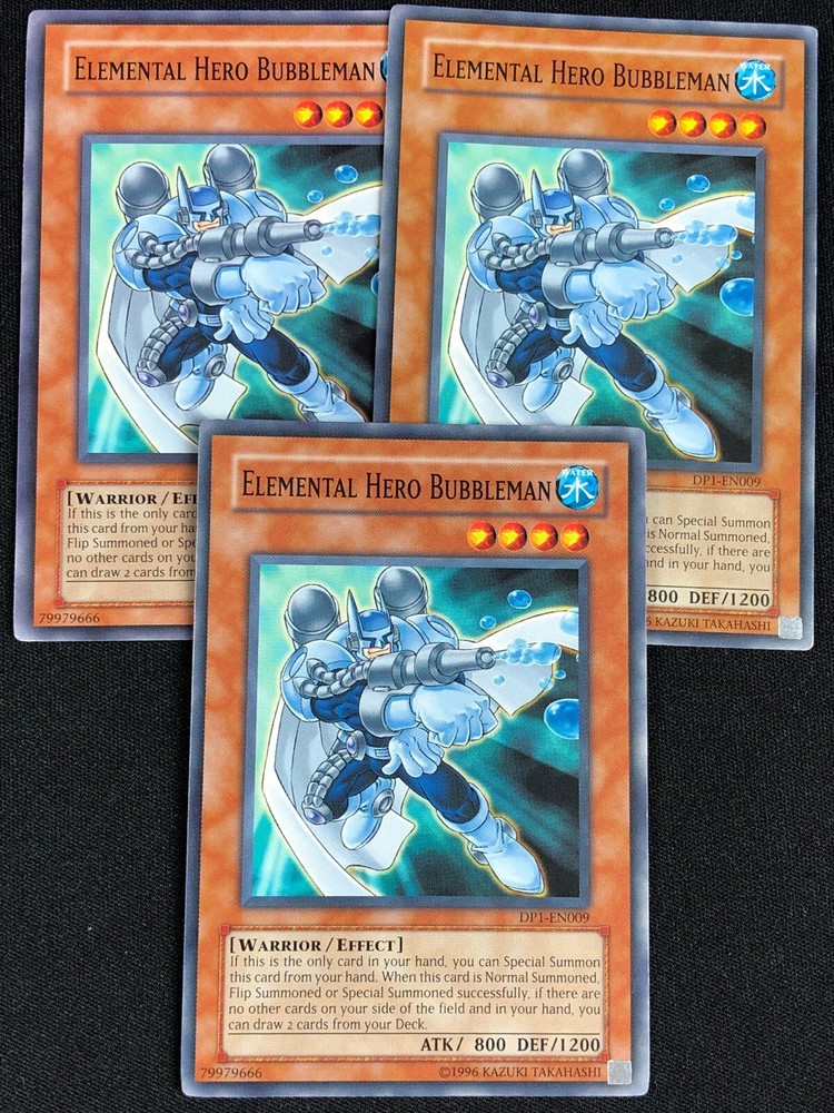 YUGIOH ELEMENTAL HERO BUBBELMAN DP1-EN009 COMMON X3 (NM) ALL CARDS IN THIS AUCTION ARE IN NEAR MINT TO MINT CONDITION UNLESS STATED OTHERWISE IN THE TITLE. AND, YOU ARE GUARANTEED TO RECEIVE THE CARD NAMED IN THE TITLE. PLEASE NOTE, IF THERE'S MORE THAN 1 COPY AVAILABLE, YOU MAY NOT RECIEVE THE SAME EXACT CARD IN THE PHOTO. HOWEVER, IT WILL BE THE SAME EXACT CARD IN THE TITLE, AND DESCRIPTION! PLEASE CONTACT ME IF THERE IS ANYTHING WRONG WITH YOUR ORDER OR SHIPPING BEFORE LEAVING FEEDBACK. PLEASE GIVE ME A CHANCE TO FIX ANY PROBLEM YOU MAY HAVE. THANK YOU! Shipping Information: Shipping and Handling for this auction will be Free inside the United States - With Tracking! International Shipping Available Through Ebay’s Global Shipping Program. (BUYER IS RESPONSIBLE FOR ANY TAX) **Read the TITLE to see the condition of the cards Before you place a bid. Any damaged cards will be listed as such In The Title (FOR EXAMPLE: Blue Eyes White Dragon LOB-001 (HP) If it doesn't say anything about damage, it is in near-mint to mint condition. If you have any questions, message me Before you place your bid.** *PLEASE READ* Ebay's Card Condition Guidelines: (NM) = Near mint or better Comparable to a fresh pack Flaws may include Minor corner and edge wear (LP) = Lightly played (Excellent) Has clearly visible signs of wear Flaws may include Moderate edge chipping Moderate surface scuffing Fuzzy corners (MP) = Moderately played (Very good) Has moderate-to-heavy damage all over Flaws may include Moderate discoloration Moderate creasing Moderate to heavy edge chipping Rounding and soft corner (HP) = Heavily played (Poor) Is extremely worn and displays flaws all over Heavily Played condition cards exhibit signs of heavy wear. Heavily Played condition cards may include cards that have significant creasing, folding, severe water damage, heavy whitening, heavy border wear, and/or tearing. RETURN POLICY: RETURNS ARE ACCEPTED IF THE ITEM ARRIVES DAMAGED, OR NOT AS DESCRIBED. RETURNS ARE NOT ACCEPTED FOR BUYERS REMORSE. CHECK OUT MY OTHER AUCTIONS! _gsrx_vers_1600 (GS 9.5a1 (1600))