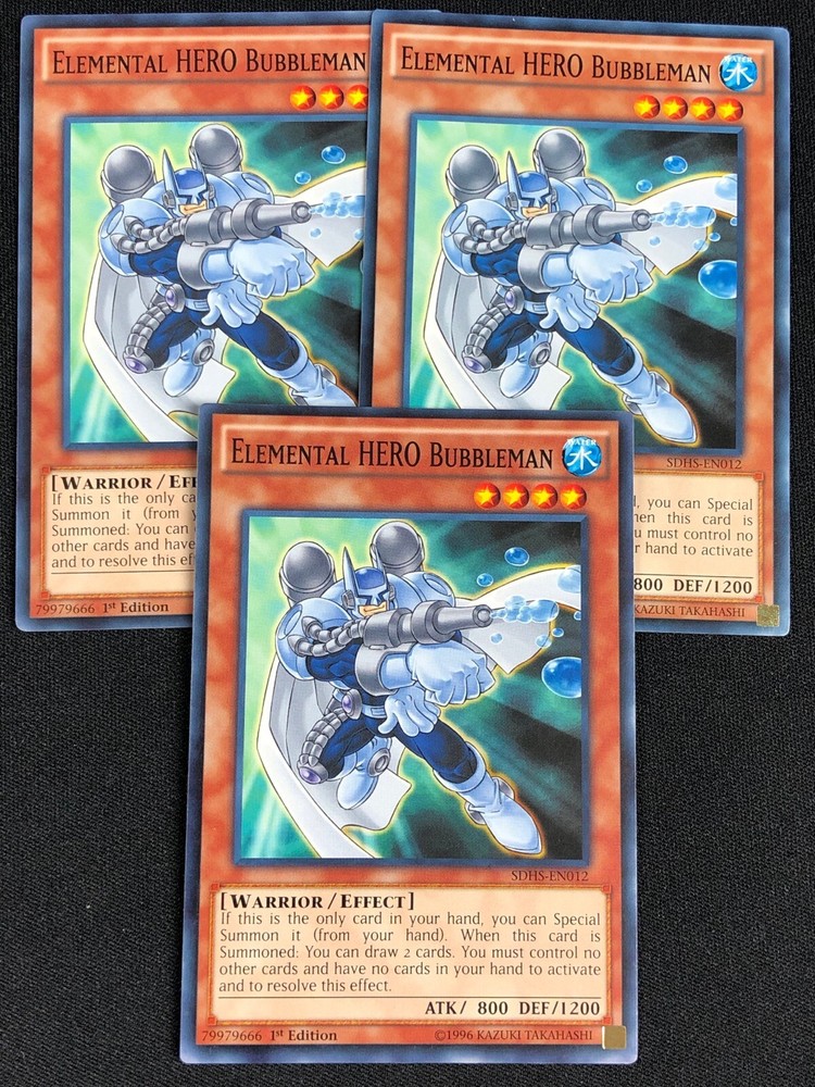 YUGIOH ELEMENTAL HERO BUBBELMAN SDHS-EN012 1ST COMMON X3 (NM) ALL CARDS IN THIS AUCTION ARE IN NEAR MINT TO MINT CONDITION UNLESS STATED OTHERWISE IN THE TITLE. AND, YOU ARE GUARANTEED TO RECEIVE THE CARD NAMED IN THE TITLE. PLEASE NOTE, IF THERE'S MORE THAN 1 COPY AVAILABLE, YOU MAY NOT RECIEVE THE SAME EXACT CARD IN THE PHOTO. HOWEVER, IT WILL BE THE SAME EXACT CARD IN THE TITLE, AND DESCRIPTION! PLEASE CONTACT ME IF THERE IS ANYTHING WRONG WITH YOUR ORDER OR SHIPPING BEFORE LEAVING FEEDBACK. PLEASE GIVE ME A CHANCE TO FIX ANY PROBLEM YOU MAY HAVE. THANK YOU! Shipping Information: Shipping and Handling for this auction will be Free inside the United States - With Tracking! International Shipping Available Through Ebay’s Global Shipping Program. (BUYER IS RESPONSIBLE FOR ANY TAX) **Read the TITLE to see the condition of the cards Before you place a bid. Any damaged cards will be listed as such In The Title (FOR EXAMPLE: Blue Eyes White Dragon LOB-001 (HP) If it doesn't say anything about damage, it is in near-mint to mint condition. If you have any questions, message me Before you place your bid.** *PLEASE READ* Ebay's Card Condition Guidelines: (NM) = Near mint or better Comparable to a fresh pack Flaws may include Minor corner and edge wear (LP) = Lightly played (Excellent) Has clearly visible signs of wear Flaws may include Moderate edge chipping Moderate surface scuffing Fuzzy corners (MP) = Moderately played (Very good) Has moderate-to-heavy damage all over Flaws may include Moderate discoloration Moderate creasing Moderate to heavy edge chipping Rounding and soft corner (HP) = Heavily played (Poor) Is extremely worn and displays flaws all over Heavily Played condition cards exhibit signs of heavy wear. Heavily Played condition cards may include cards that have significant creasing, folding, severe water damage, heavy whitening, heavy border wear, and/or tearing. RETURN POLICY: RETURNS ARE ACCEPTED IF THE ITEM ARRIVES DAMAGED, OR NOT AS DESCRIBED. RETURNS ARE NOT ACCEPTED FOR BUYERS REMORSE. CHECK OUT MY OTHER AUCTIONS! _gsrx_vers_1600 (GS 9.5a1 (1600))