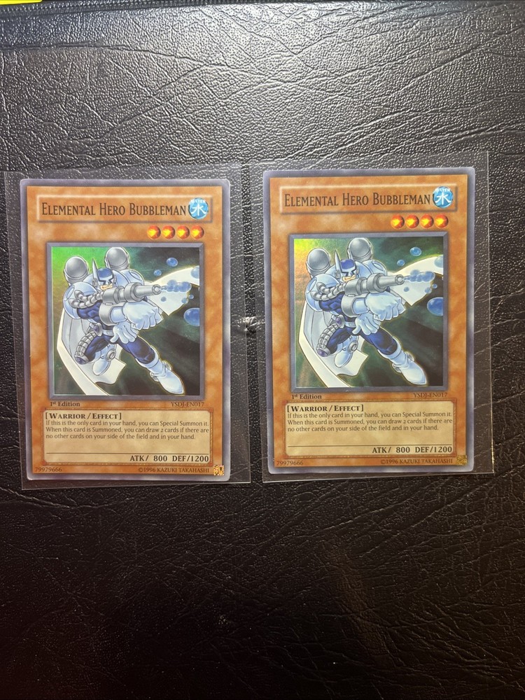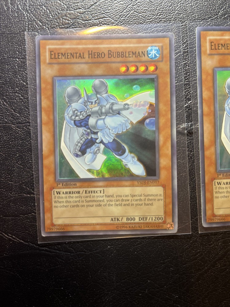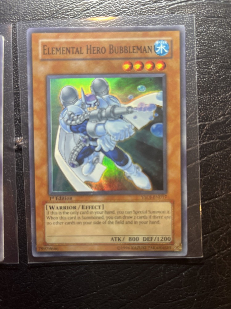 Level up your Yu-Gi-Oh! TCG collection with the Elemental Hero Bubbleman card from the - Yugi - set. This English-language card, numbered YSDJ-EN017, is a must-have for players and collectors alike, featuring the Angel creature/monster type and the impressive BREAK speciality. This 1st edition card, which was manufactured in 1999 by Konami, is in excellent shape and ready to be added to your collection. Its regular finish and amazing rare rarity make it a valuable addition to any deck or display. Don't miss out on the opportunity to own this exclusive card, which is autographed by 5ban Graphics and authenticated by the Professional Sports Authenticator (PSA).
