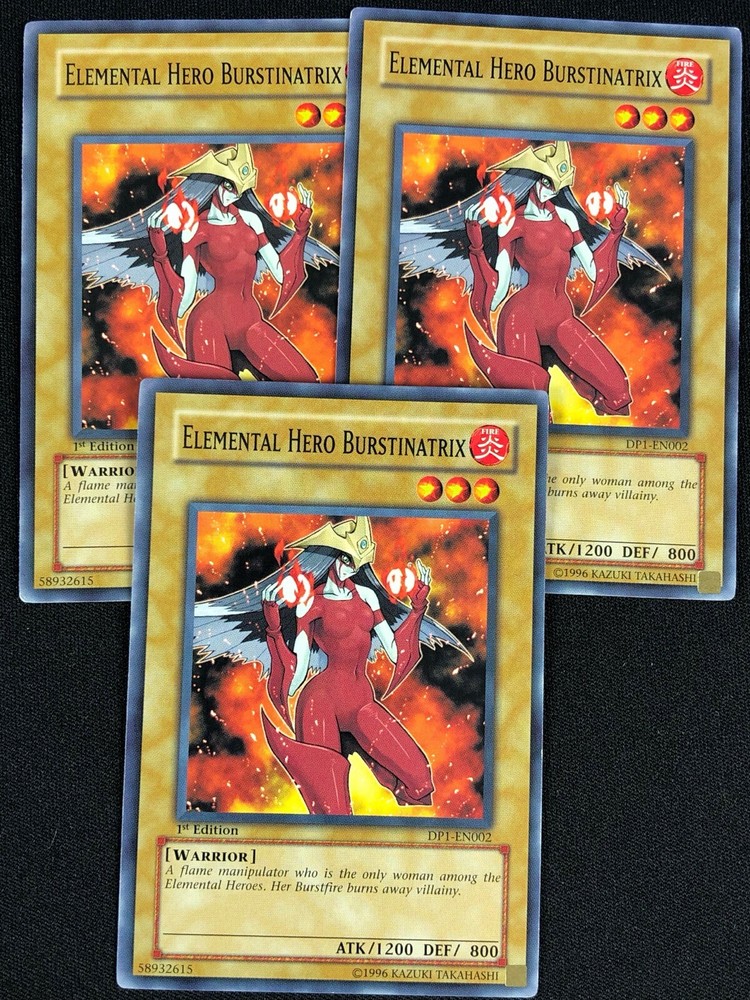 YUGIOH ELEMENTAL HERO BURSTINATRIX DP1-EN002 1ST COMMON X3 (LP) ALL CARDS IN THIS AUCTION ARE IN NEAR MINT TO MINT CONDITION UNLESS STATED OTHERWISE IN THE TITLE. AND, YOU ARE GUARANTEED TO RECEIVE THE CARD NAMED IN THE TITLE. PLEASE NOTE, IF THERE'S MORE THAN 1 COPY AVAILABLE, YOU MAY NOT RECIEVE THE SAME EXACT CARD IN THE PHOTO. HOWEVER, IT WILL BE THE SAME EXACT CARD IN THE TITLE, AND DESCRIPTION! PLEASE CONTACT ME IF THERE IS ANYTHING WRONG WITH YOUR ORDER OR SHIPPING BEFORE LEAVING FEEDBACK. PLEASE GIVE ME A CHANCE TO FIX ANY PROBLEM YOU MAY HAVE. THANK YOU! Shipping Information: Shipping and Handling for this auction will be Free inside the United States - With Tracking! International Shipping Available Through Ebay’s Global Shipping Program. (BUYER IS RESPONSIBLE FOR ANY TAX) **Read the TITLE to see the condition of the cards Before you place a bid. Any damaged cards will be listed as such In The Title (FOR EXAMPLE: Blue Eyes White Dragon LOB-001 (HP) If it doesn't say anything about damage, it is in near-mint to mint condition. If you have any questions, message me Before you place your bid.** *PLEASE READ* Ebay's Card Condition Guidelines: (NM) = Near mint or better Comparable to a fresh pack Flaws may include Minor corner and edge wear (LP) = Lightly played (Excellent) Has clearly visible signs of wear Flaws may include Moderate edge chipping Moderate surface scuffing Fuzzy corners (MP) = Moderately played (Very good) Has moderate-to-heavy damage all over Flaws may include Moderate discoloration Moderate creasing Moderate to heavy edge chipping Rounding and soft corner (HP) = Heavily played (Poor) Is extremely worn and displays flaws all over Heavily Played condition cards exhibit signs of heavy wear. Heavily Played condition cards may include cards that have significant creasing, folding, severe water damage, heavy whitening, heavy border wear, and/or tearing. RETURN POLICY: RETURNS ARE ACCEPTED IF THE ITEM ARRIVES DAMAGED, OR NOT AS DESCRIBED. RETURNS ARE NOT ACCEPTED FOR BUYERS REMORSE. CHECK OUT MY OTHER AUCTIONS! _gsrx_vers_1652 (GS 9.7.4 (1652))