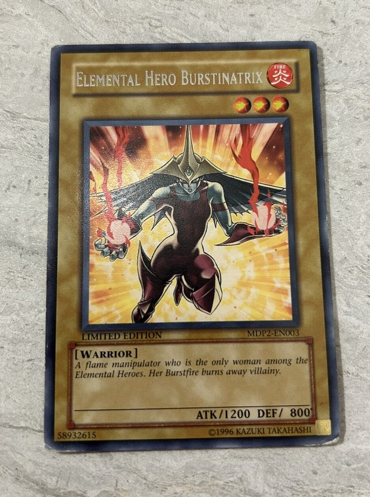 YUGIOH ELEMENTAL HERO BURSTINATRIX MDP2-EN003 RARE (LP). Condition is Ungraded. Shipped with eBay Standard Envelope for Eligible Items up to $20.